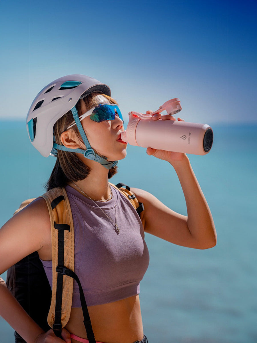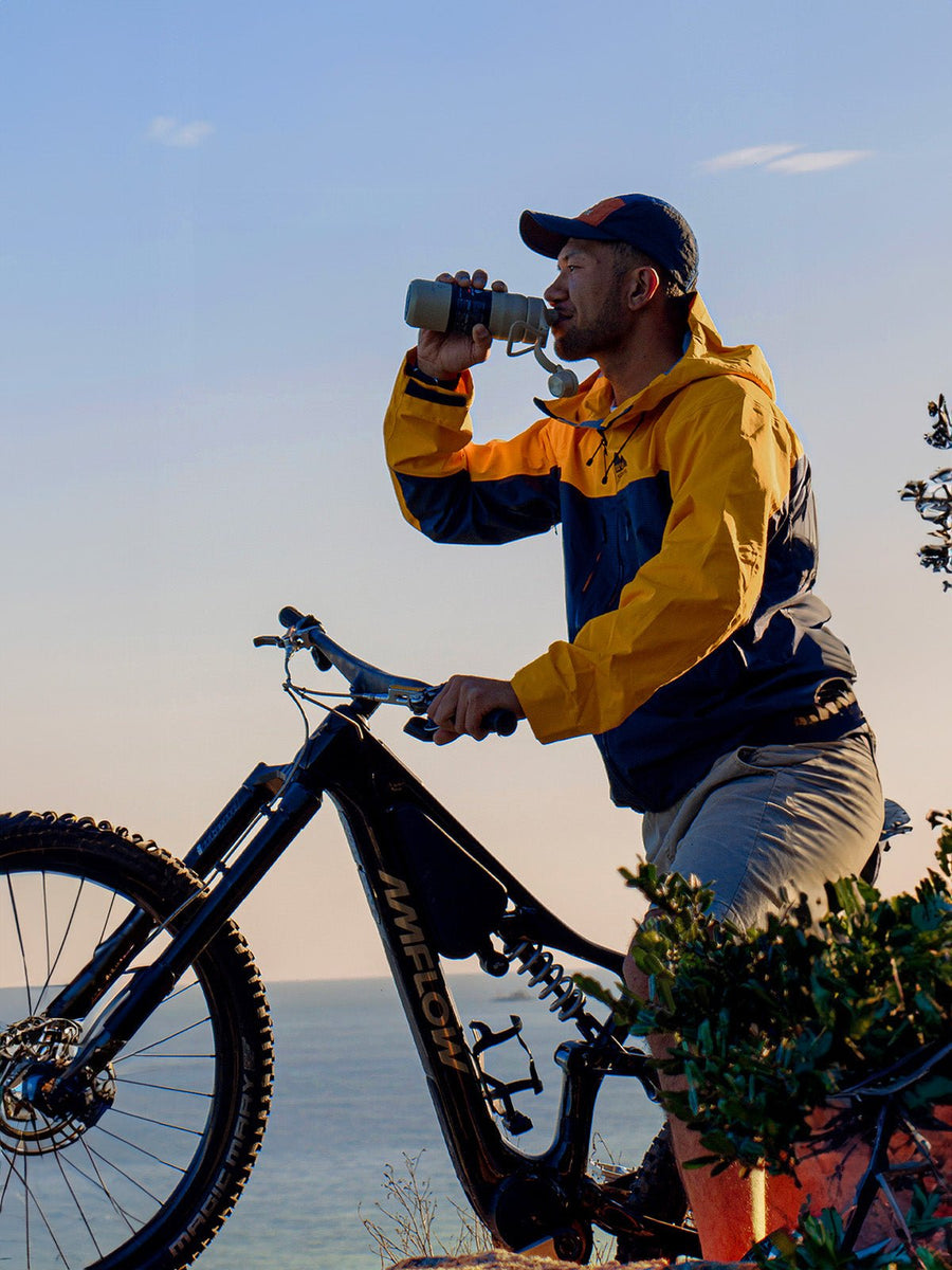 Il suo tappo con chiusura di sicurezza impedisce qualsiasi apertura accidentale e garantisce una tenuta stagna totale anche in movimento. L’apertura a 180° e il pulsante di accesso rapido facilitano la degustazione con una sola mano, mentre il rivestimento esterno opaco antiscivolo assicura una presa comoda e stabile.