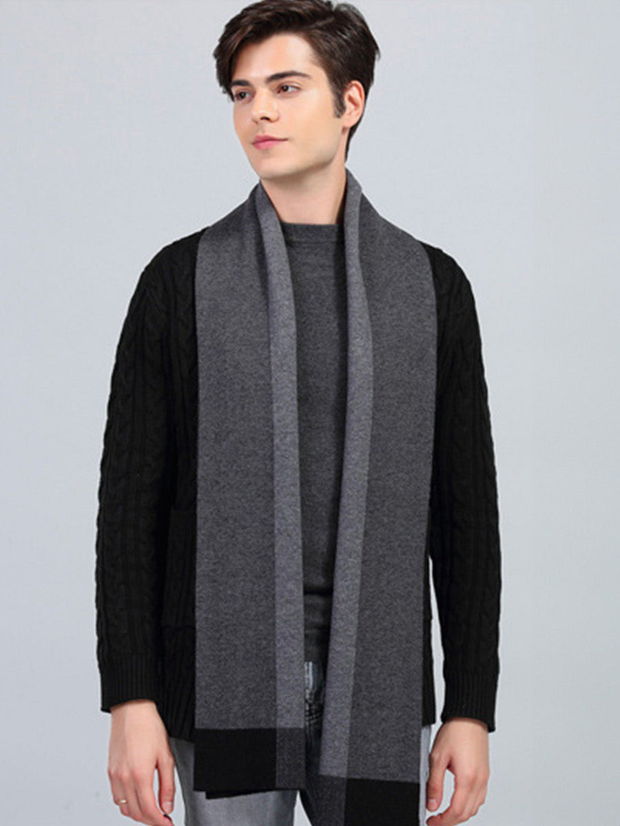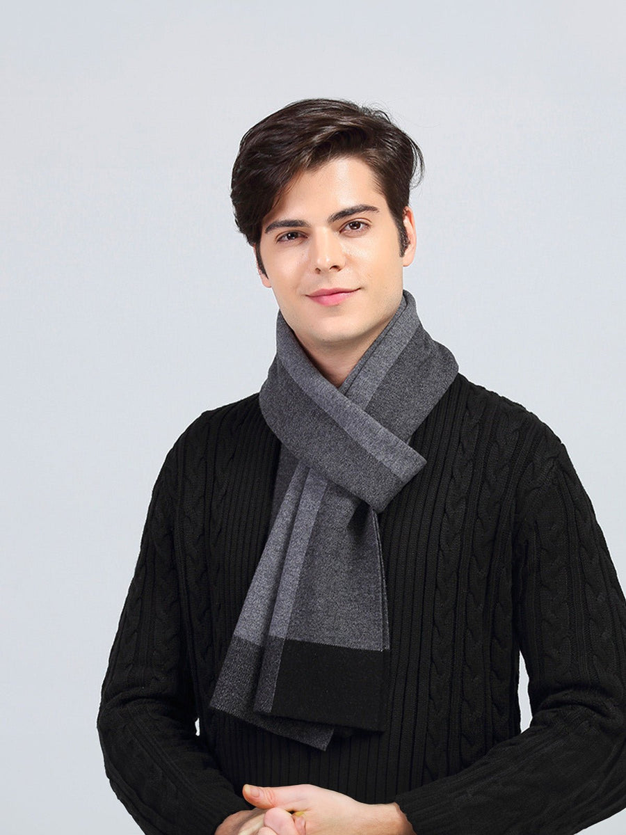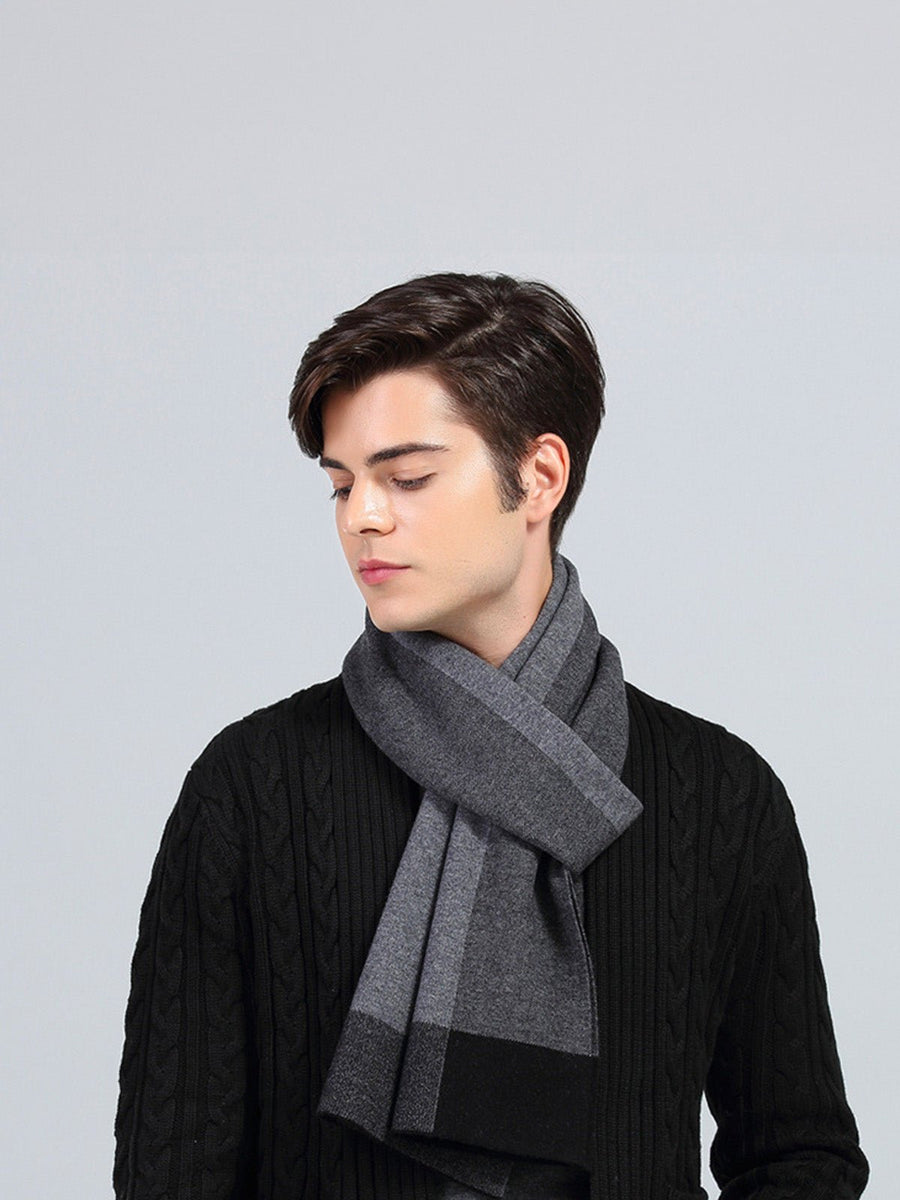 Sciarpa da uomo in morbida lana, design a blocchi di colore, stile moderno invernale, calda e confortevole, lunghezza generosa, modello Sébastien