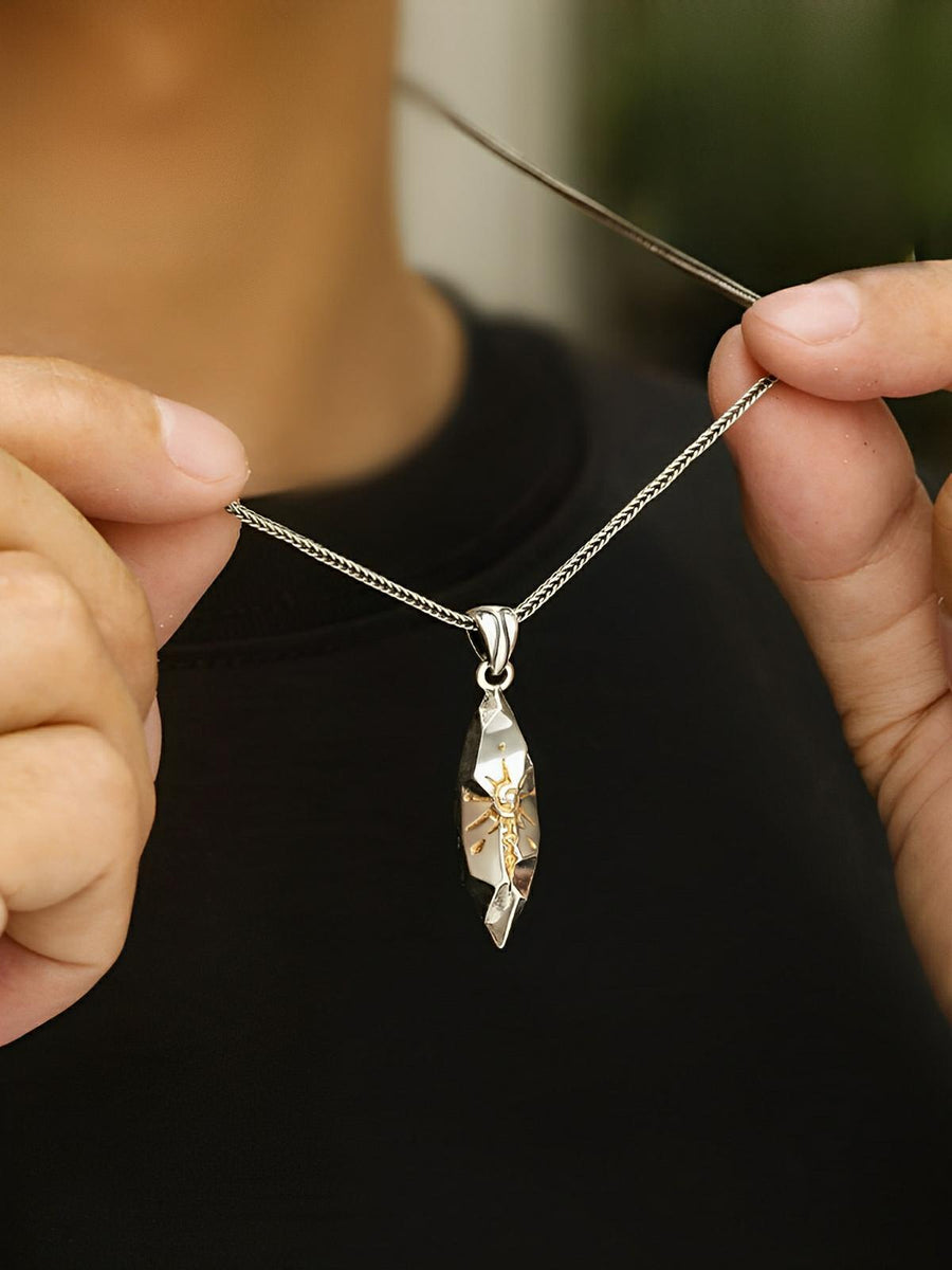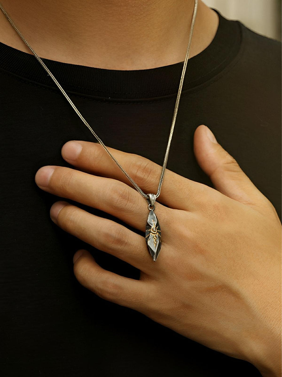 Scoprite questo splendido collare da uomo dal design geometrico ispirato alla tradizione rétro. Realizzato in rame placcato argento, questo audace pendente offre un aspetto invecchiato ed elegante, valorizzato da un motivo inciso finemente lavorato. Disponibile con una catena veneziana, questo collare aggiunge un tocco di carattere a qualsiasi outfit. Il suo design unico lo rende un regalo perfetto per le occasioni speciali o semplicemente per valorizzare il vostro stile quotidiano.