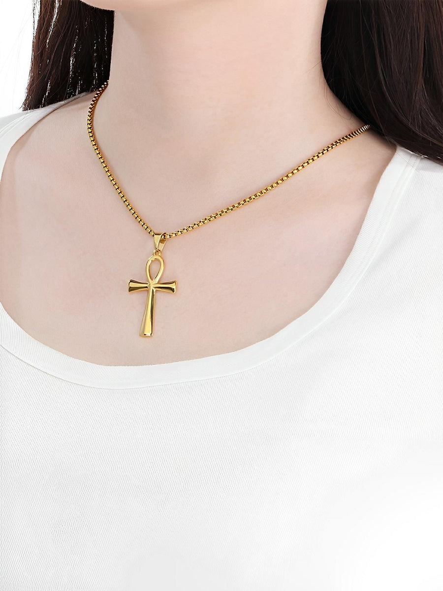 Collana con pendente Ankh, in acciaio inox 316L, maglia veneziana, modello Shani