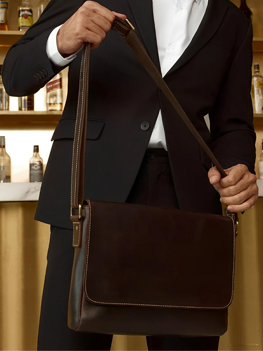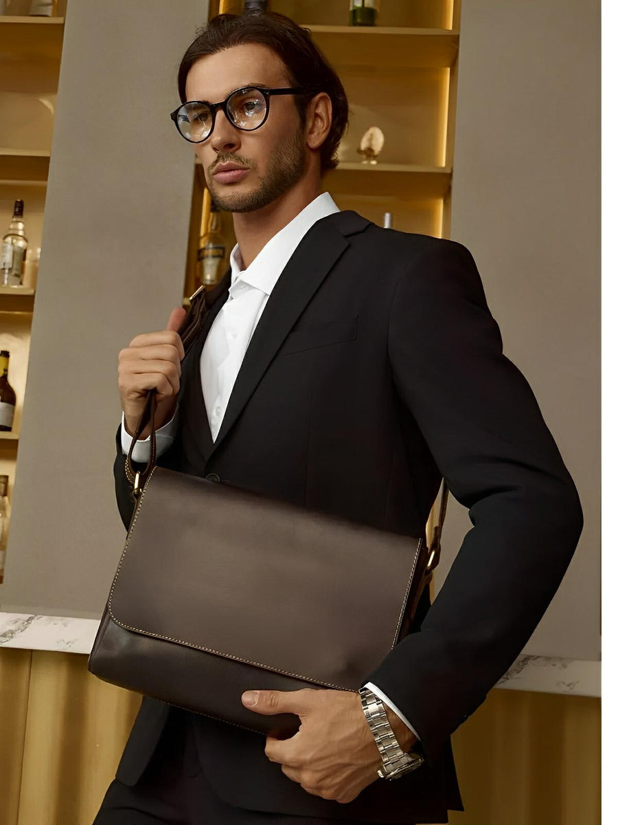 La chiusura combina una patta magnetica e una cerniera per una doppia sicurezza. Il suo design vintage e le finiture impeccabili lo rendono una scelta ideale per l’uomo che cerca un accessorio al tempo stesso elegante e pratico.
