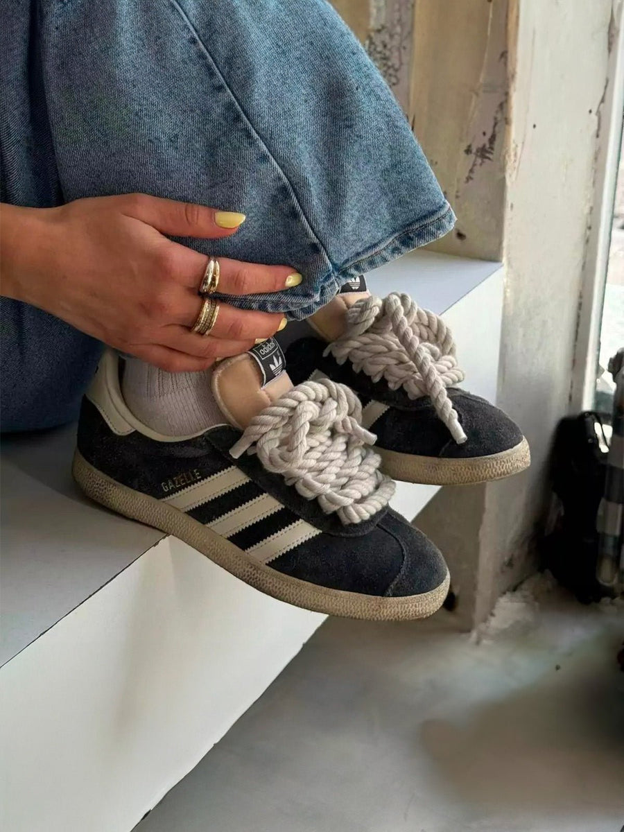 Trasformate le vostre scarpe con questi lacci corda spessi che donano un tocco audace e unico alle vostre sneakers. Realizzati in misto cotone e poliestere, offrono al tempo stesso morbidezza, resistenza e durata nel tempo. Il loro ampio diametro di 12 mm crea un effetto visivo deciso che mette immediatamente in risalto le vostre scarpe da ginnastica.