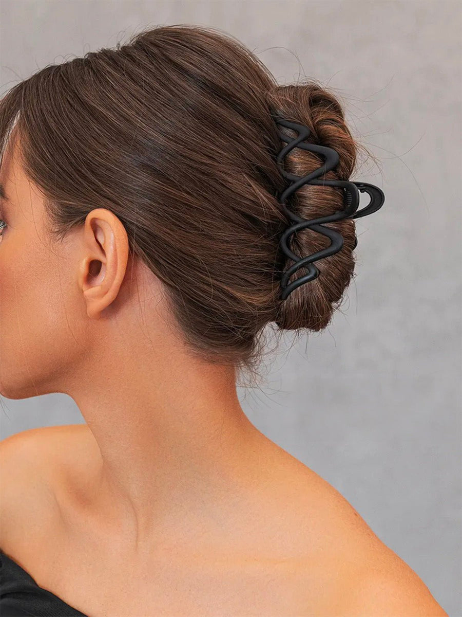 Questa molletta per capelli in metallo si distingue per il suo design ondulato moderno e il formato generoso che garantisce una tenuta perfetta dei capelli. Grazie alla sua struttura robusta e alla molla resistente, mantiene efficacemente le acconciature, sia che si tratti di uno chignon elaborato sia di una semplice acconciatura quotidiana.