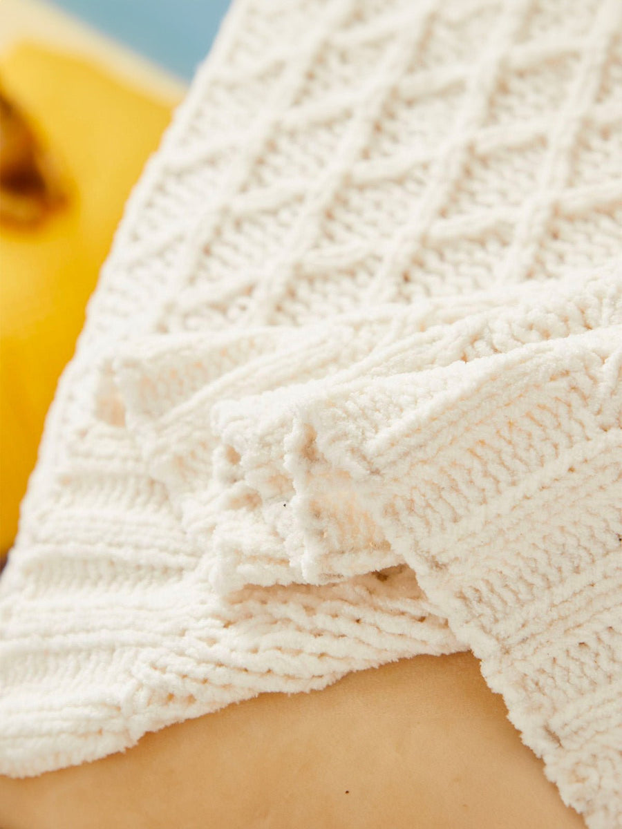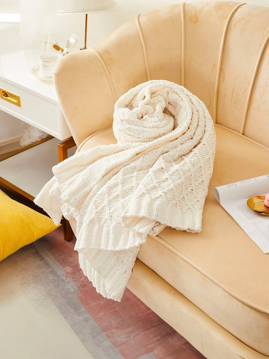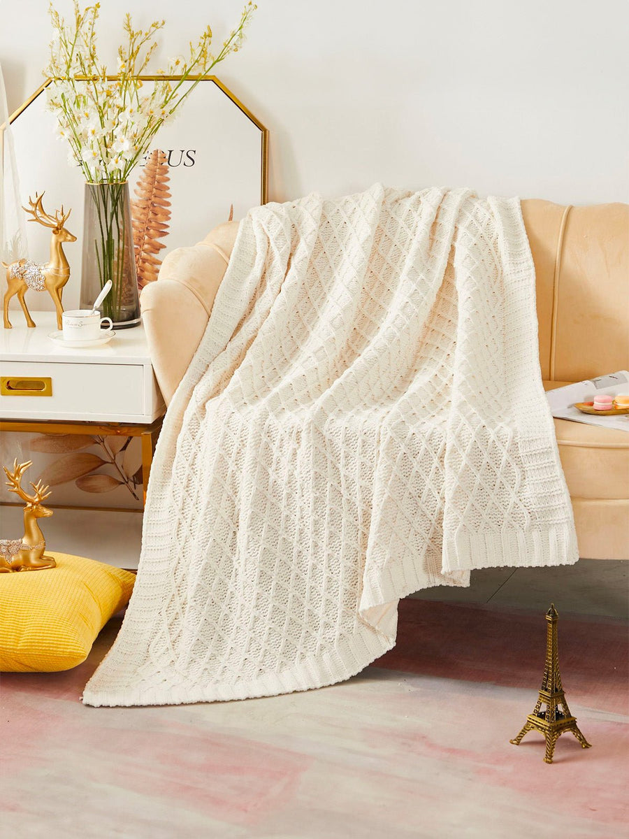 Plaid in ciniglia lavorato a maglia crema, coperta morbida da divano, plaid geometrico accogliente, copriletto soffice, coperta in maglia calda, modello Solal
