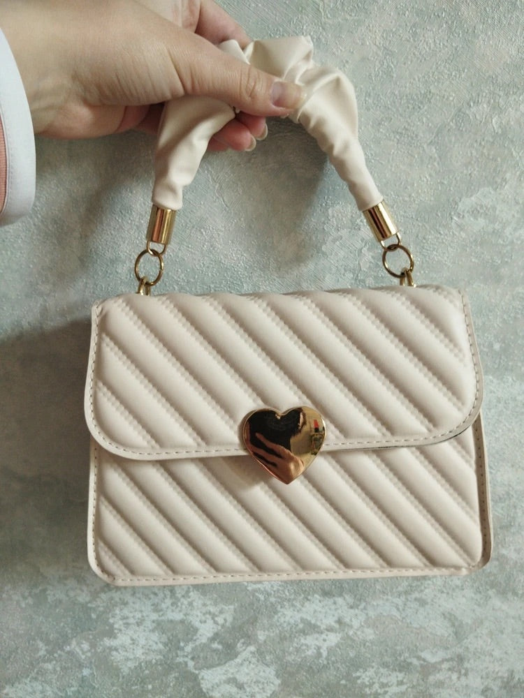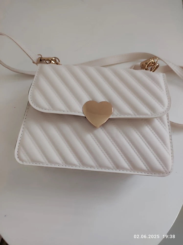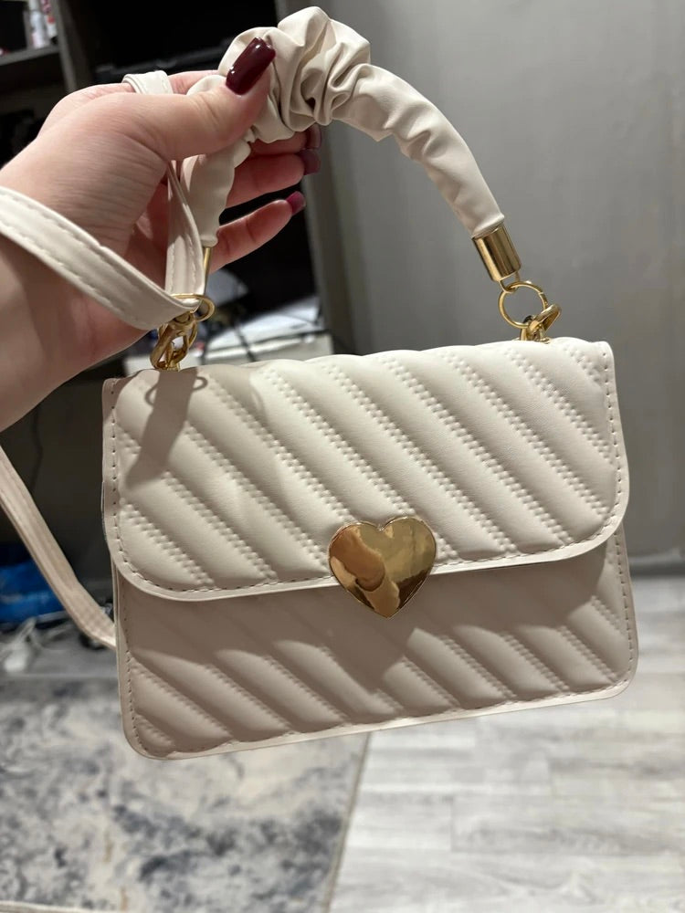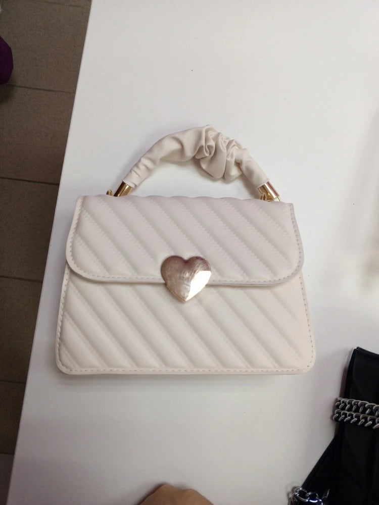 Aggiungete un tocco audace al vostro outfit con questa borsa a mano in similpelle vegana trapuntata dalla silhouette strutturata e dal fascino deciso. Il suo fermaglio a forma di cuore cattura la luce e attira l’attenzione, garantendo al contempo una chiusura sicura. Il formato compatto è perfettamente dimensionato per accogliere i vostri oggetti essenziali di tutti i giorni.