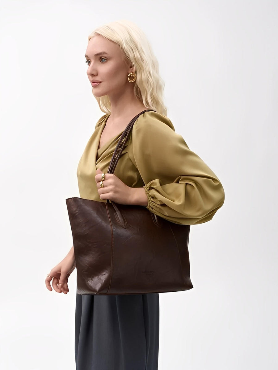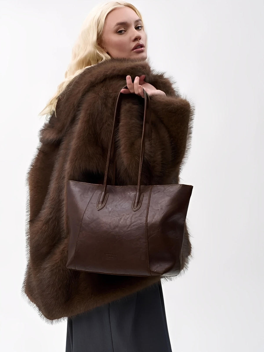 Questa grande borsa shopper da donna unisce uno stile deciso a una capacità generosa. Realizzata in pelle sintetica resistente, presenta una texture liscia dall’aspetto molto naturale, ideale per l’uso quotidiano in città, al lavoro o all’università.