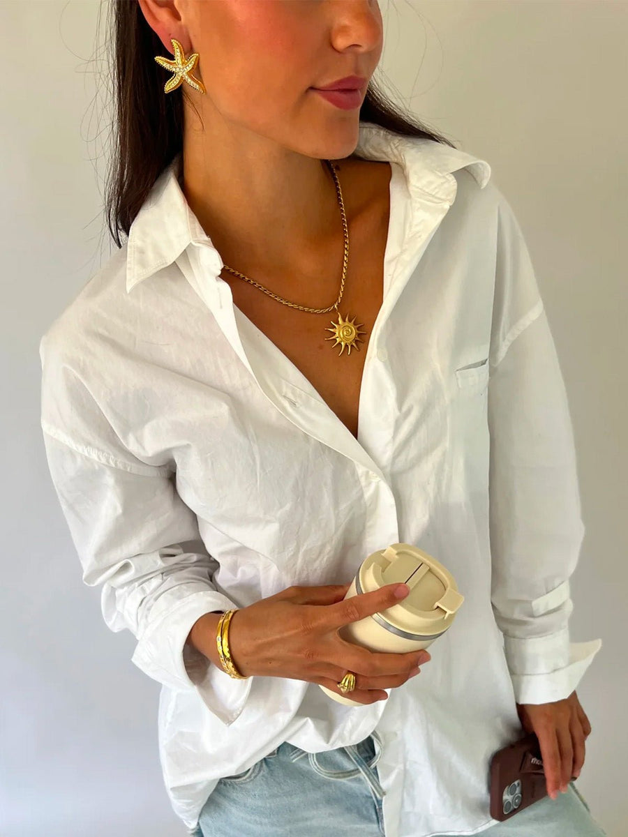 Immergetevi in un’atmosfera estiva tutto l’anno con questi orecchini a stella marina dai riflessi dorati e scintillanti. Il loro design geometrico ispirato all’oceano si impone come un gioiello statement, solare e deciso.