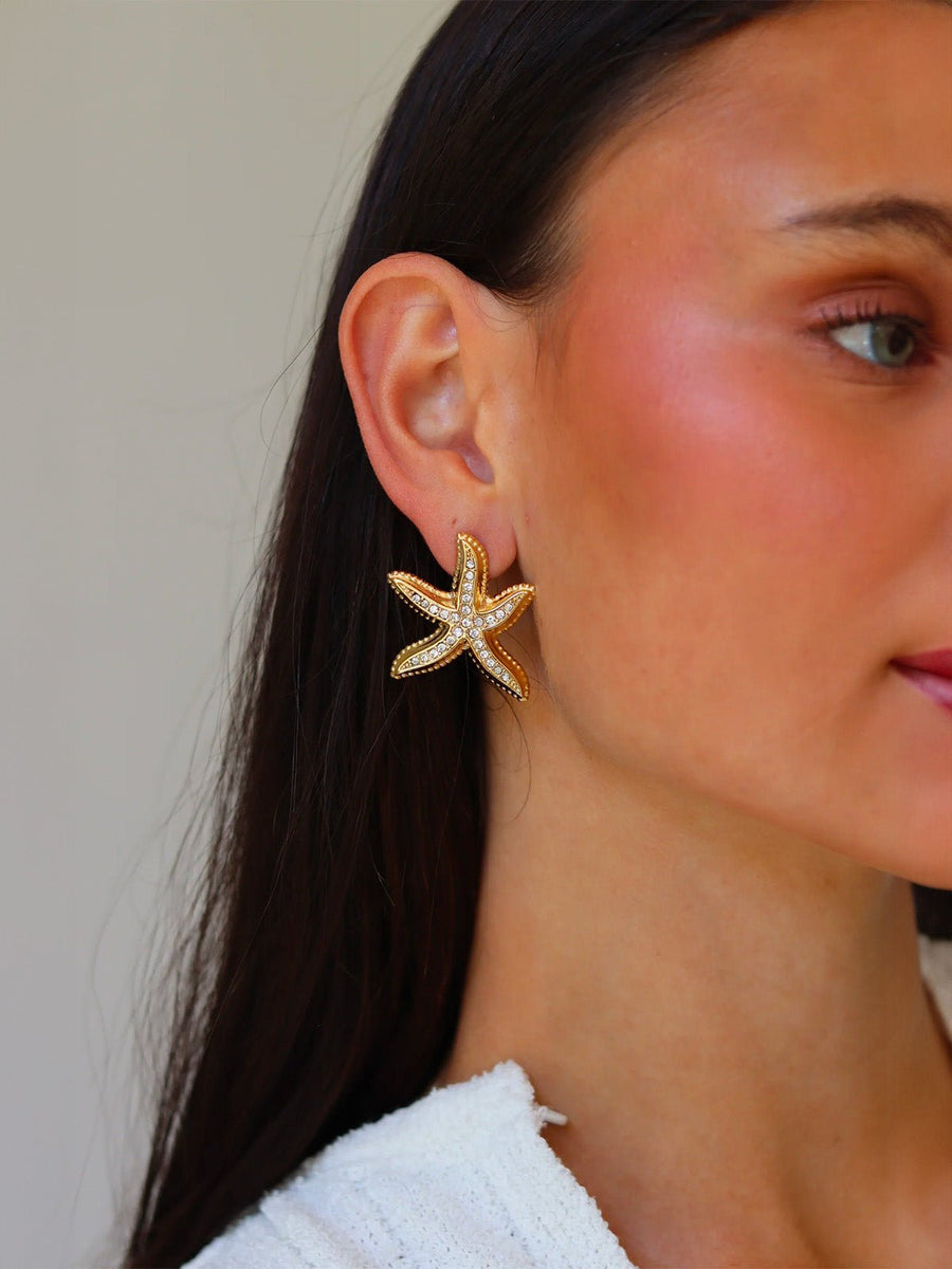 Orecchini a stella marina dorata, gioiello da spiaggia, acciaio inossidabile, per donna, effetto diamante, modello Stary