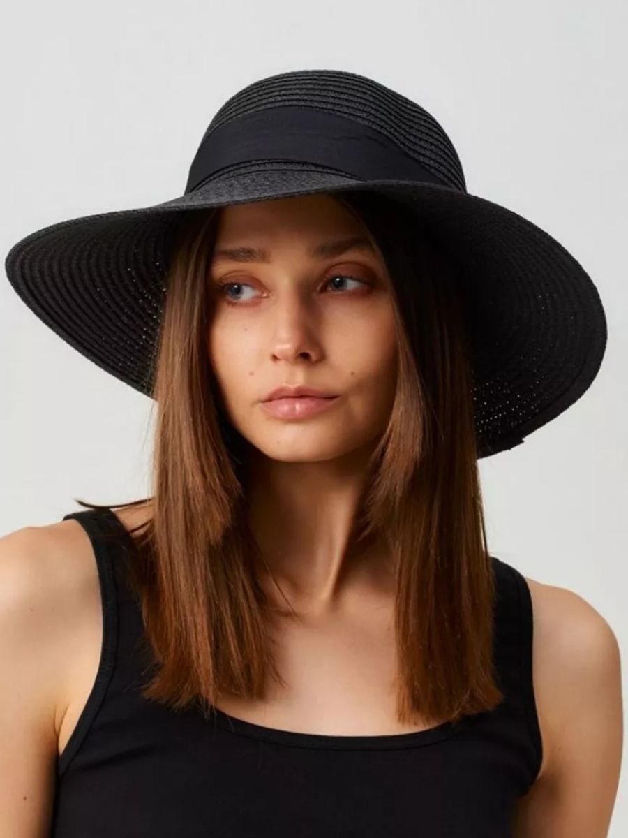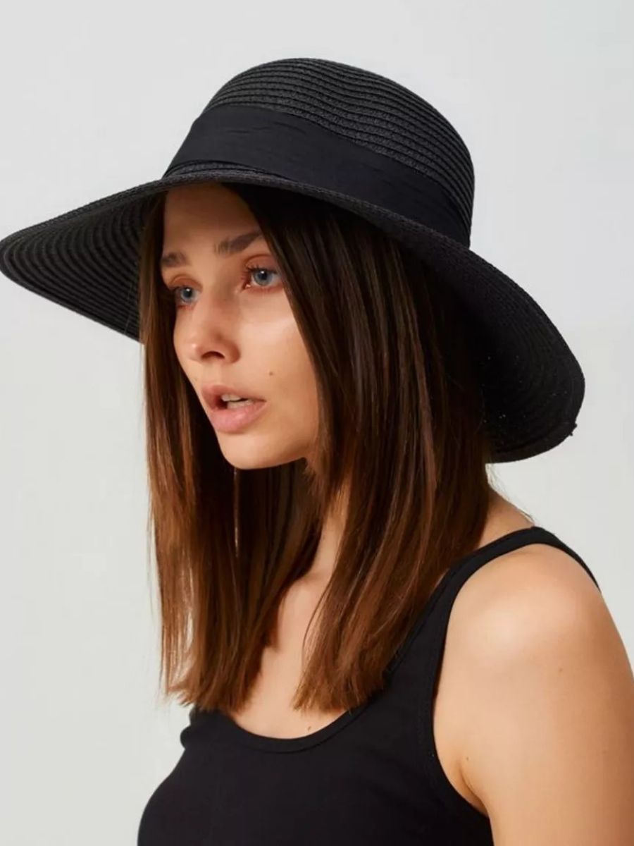 Questo cappello di paglia nero da donna unisce protezione solare e stile deciso. Progettato per le giornate soleggiate, dispone di una ampia tesa di 8 cm che protegge efficacemente il viso dai raggi UV, con una protezione certificata UPF 40+.