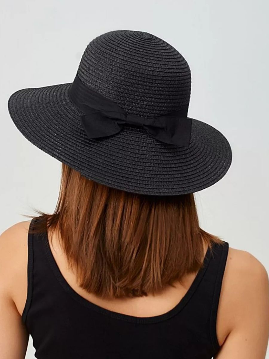 Il suo design in paglia intrecciata nera è valorizzato da un grazioso fiocco tono su tono sulla cupola, per un tocco di moda discreto. Questo cappello si adatta comodamente a tutte le teste grazie al suo cordino interno regolabile.