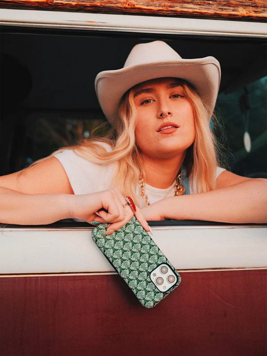 Proteggete il vostro iPhone con una cover a doppio strato dal design vegetale stilizzato, pensata per unire estetica, comfort e sicurezza. La sua stampa grafica di palme stilizzate cattura immediatamente l’attenzione, aggiungendo un tocco di tendenza al vostro telefono. Questa cover è disponibile in due finiture — opaca e lucida — per adattarsi al vostro stile e alle vostre preferenze sensoriali.