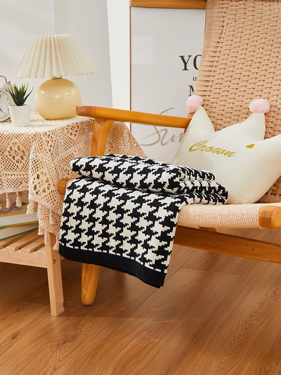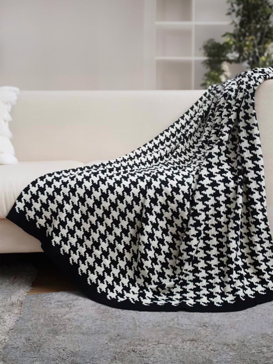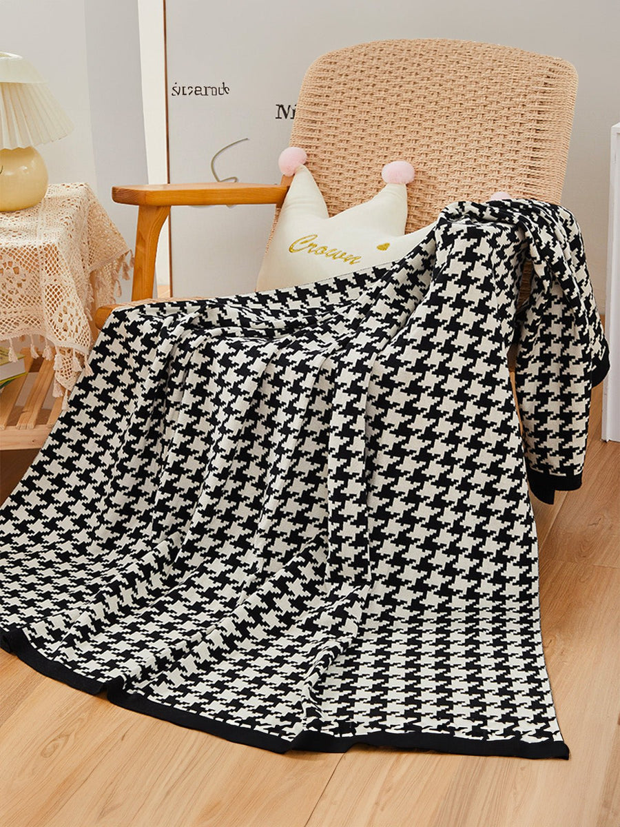 Plaid in cotone pied-de-poule, coperta da divano accogliente, coperta estiva morbida, plaid decorativo per il salotto, plaid nero bianco o nero caffè, modello Thalis