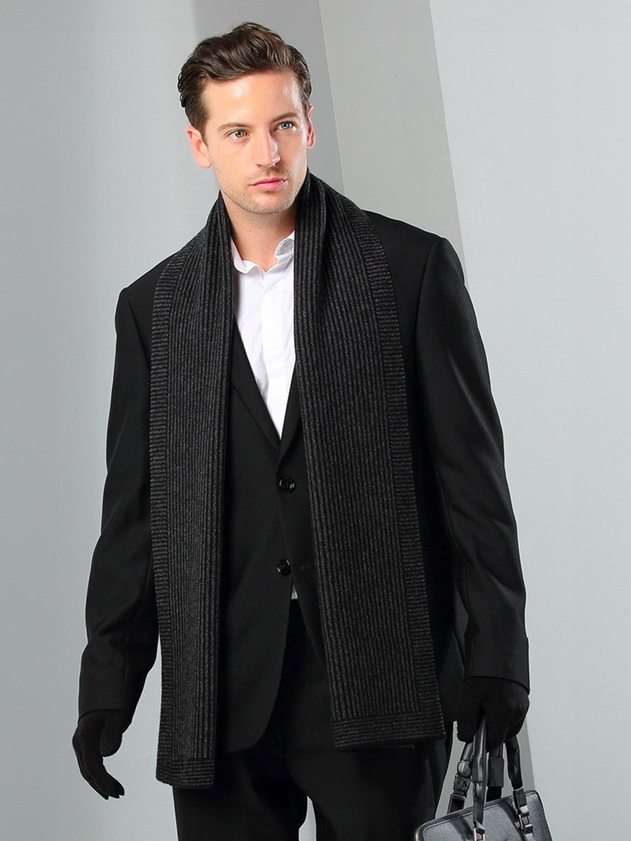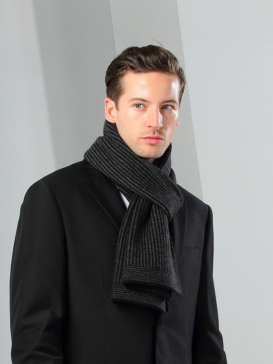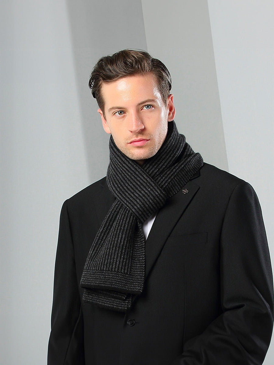 Sciarpa uomo in cashmere per l'inverno, lana morbida e calda, motivo discreto grigio, sciarpa lunga invernale, accessorio moda maschile, modello Thomas