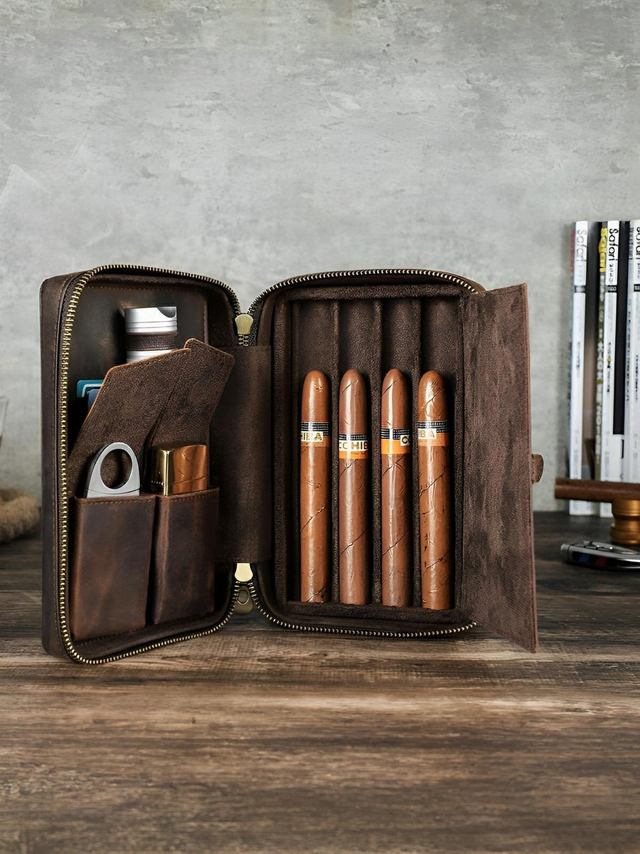 Trasportate e proteggete i vostri sigari con stile grazie a questo astuccio premium in pelle. Progettato per gli intenditori più esigenti, offre una capacità di 4 sigari, garantendo una conservazione ottimale durante i vostri spostamenti.
