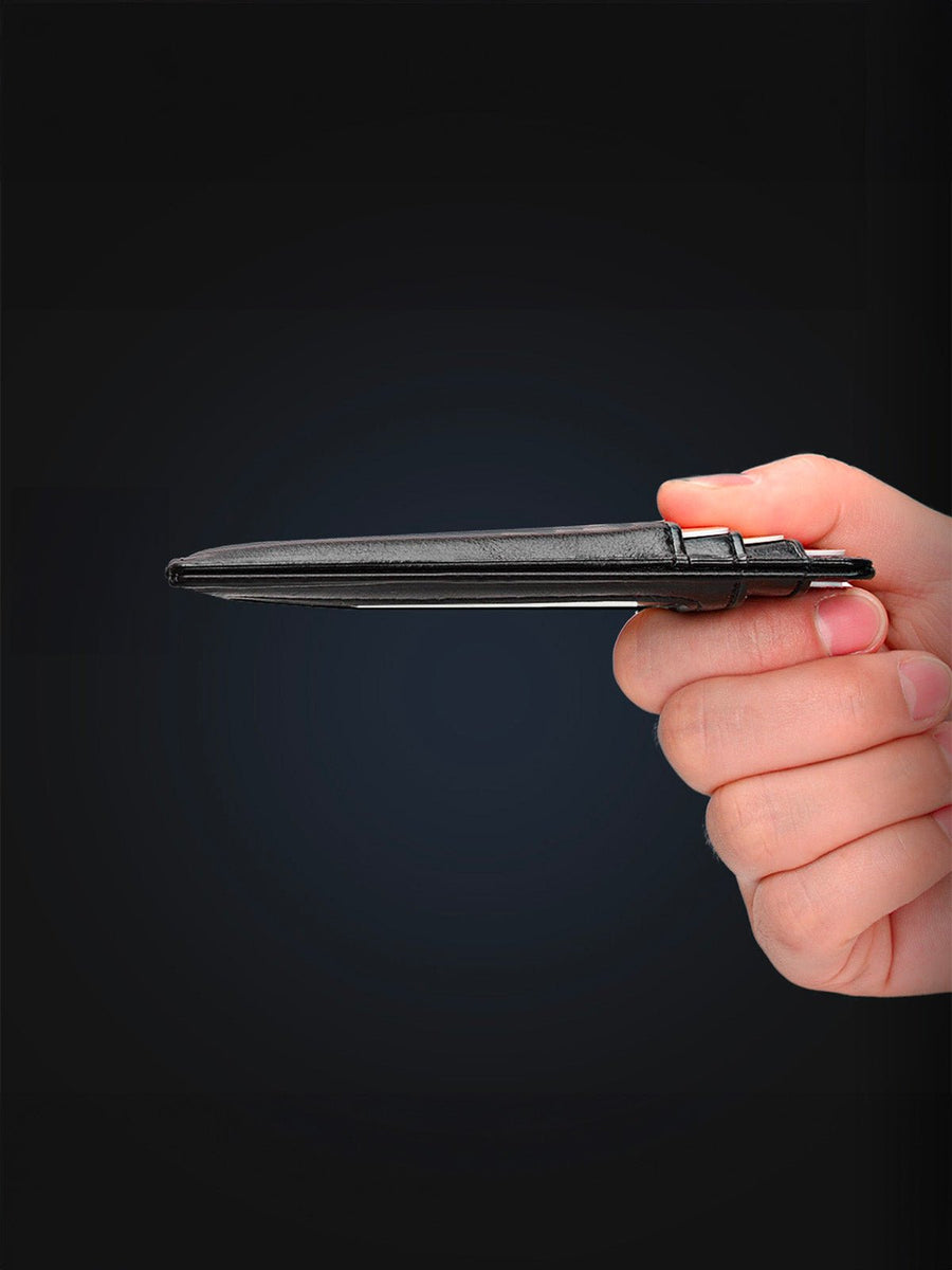 Portafoglio compatto in pelle, protezione RFID, ultra sottile, formato carta, scomparto banconote, modello Tiersy
