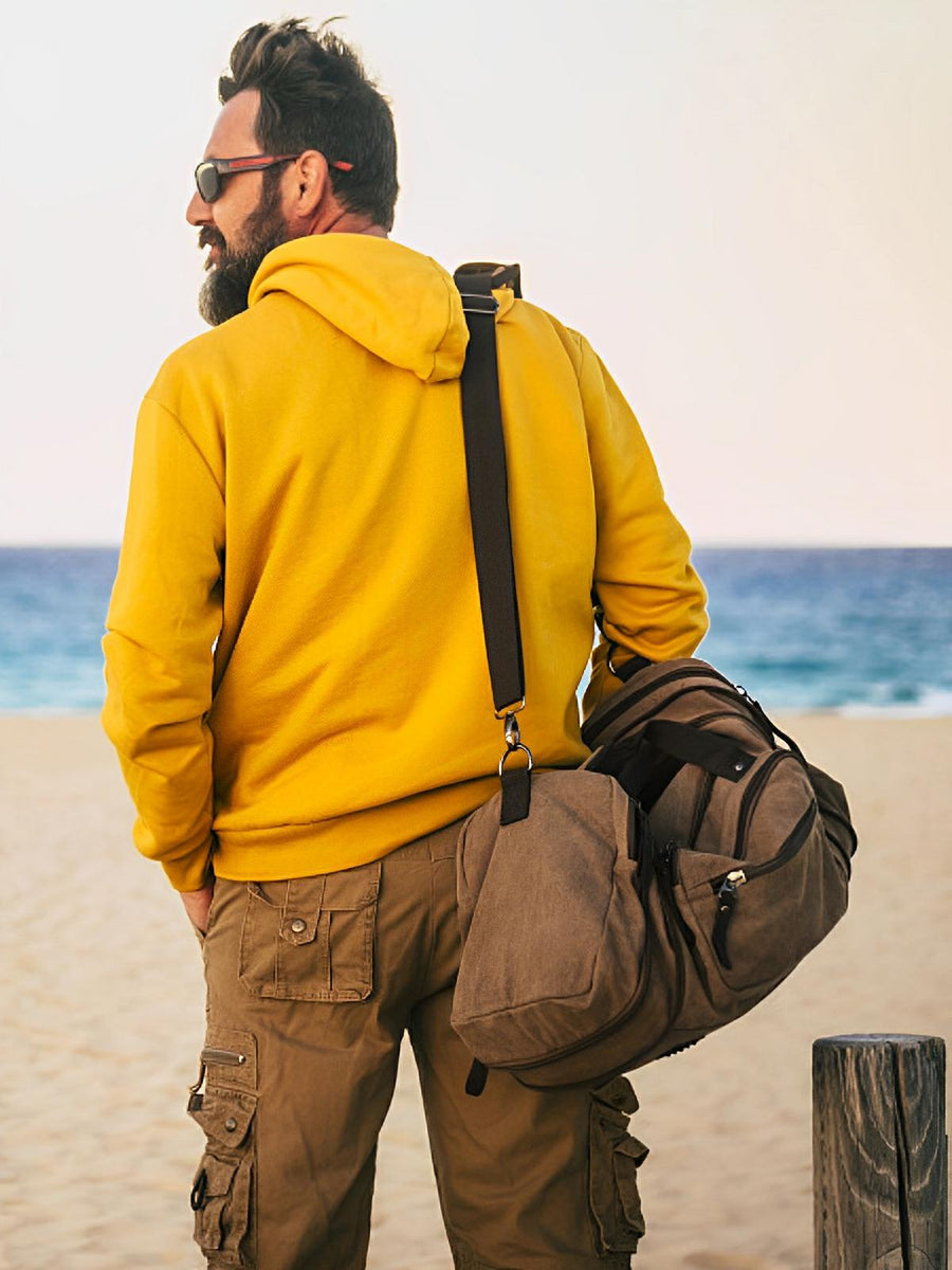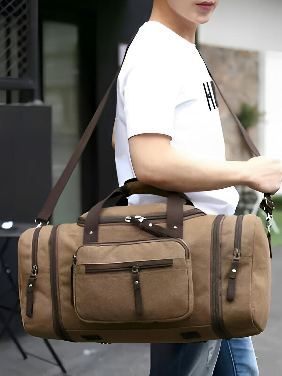 Borsa da viaggio in tela per uomo, grande formato, multi-tasche e resistente, modello Tony