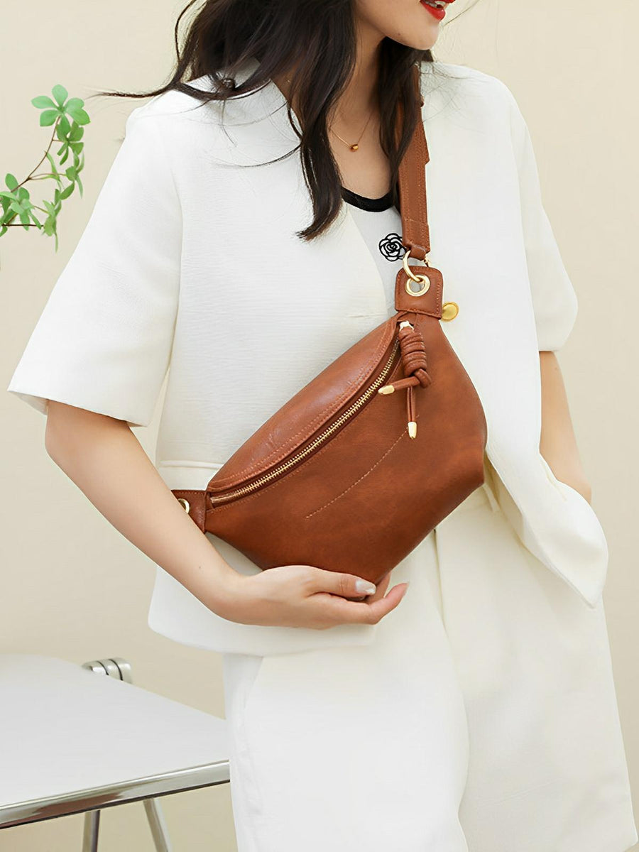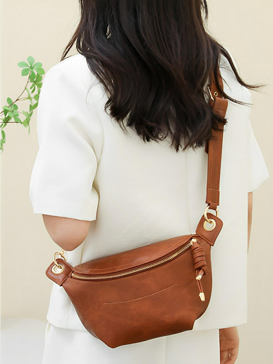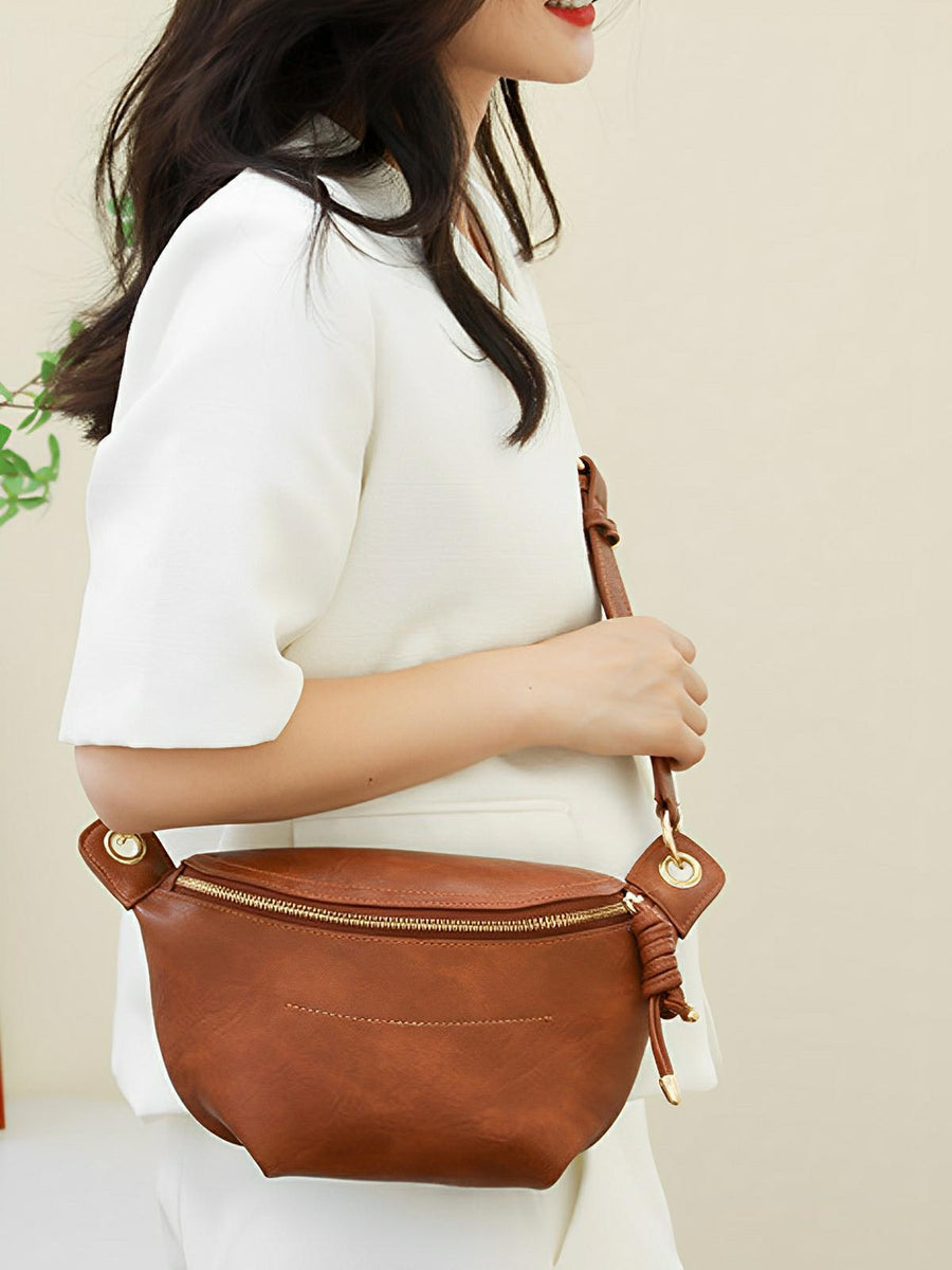 Lasciatevi conquistare da questa borsa a marsupio rétro, perfetta per un look di tendenza e pratico nella vita quotidiana. Realizzata in similpelle vegana con una texture ispirata al cuoio di cavallo pazzo, offre un tocco raffinato e un’eccellente resistenza.