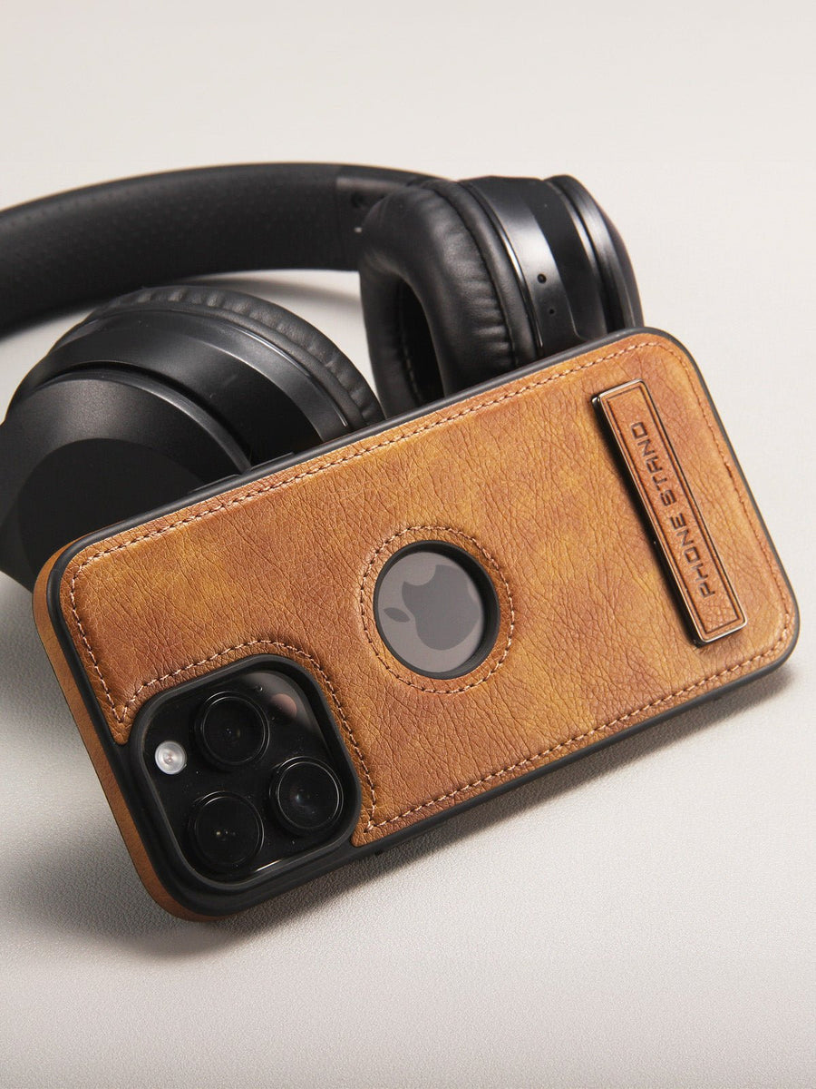 Questa cover per iPhone unisce uno stile deciso e una funzionalità di alto livello. Realizzata in similpelle vegana testurizzata, offre una presa confortevole e un tocco lussuoso. La cover è dotata di un supporto pieghevole nascosto sul retro, ideale per guardare video o effettuare chiamate in modalità vivavoce.