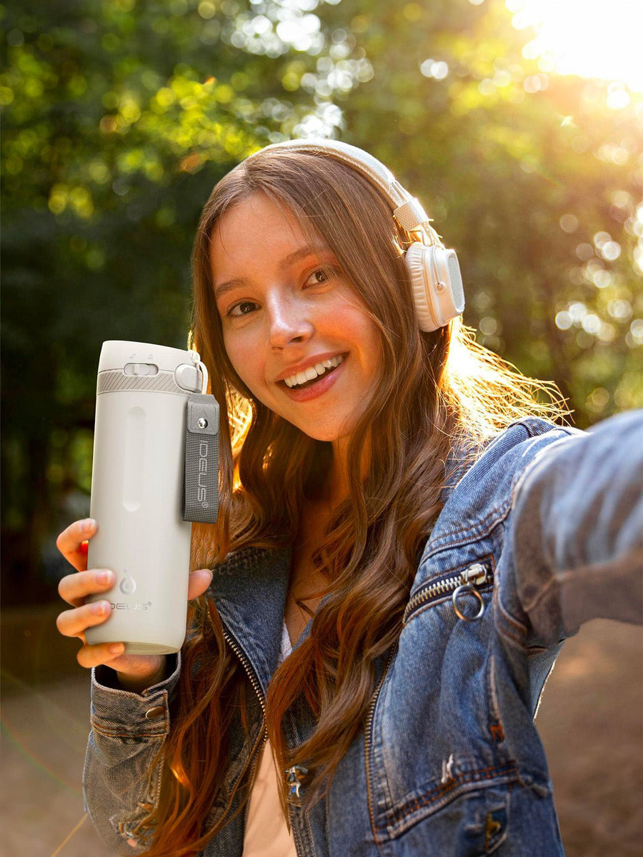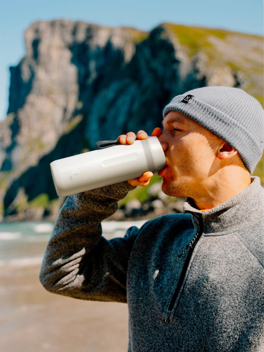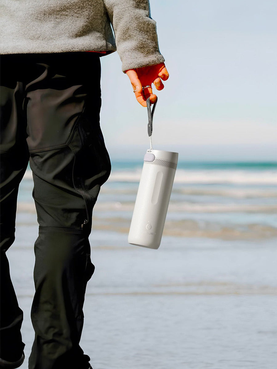 La ampia apertura facilita il riempimento e la pulizia, mentre il laccetto robusto consente un trasporto confortevole. Il design moderno ed essenziale, disponibile in diversi colori, si adatta a tutti gli stili di vita.