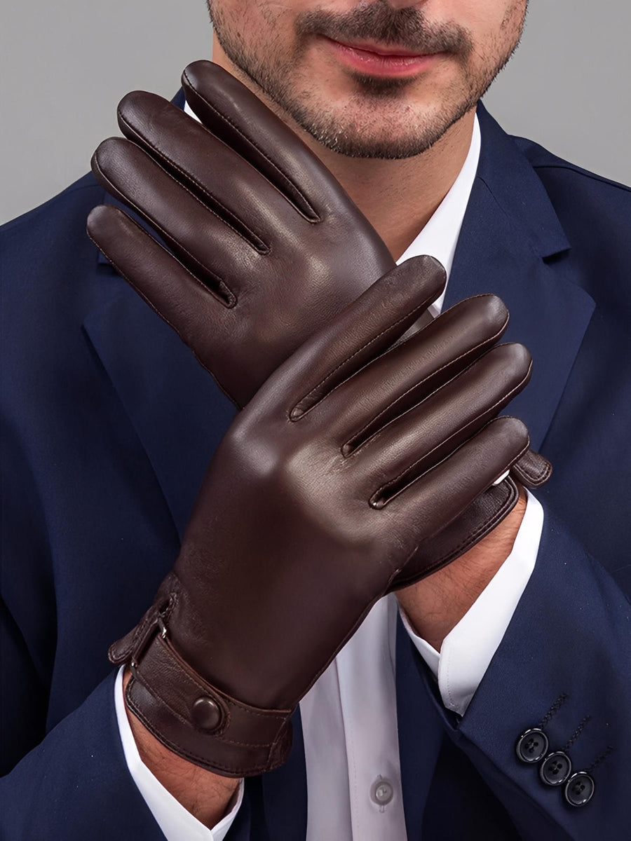 Guanti in pelle da uomo, fodera calda e morbida, compatibili con touchscreen, chiusura regolabile al polso, perfetti per l’inverno in città, modello Tradus