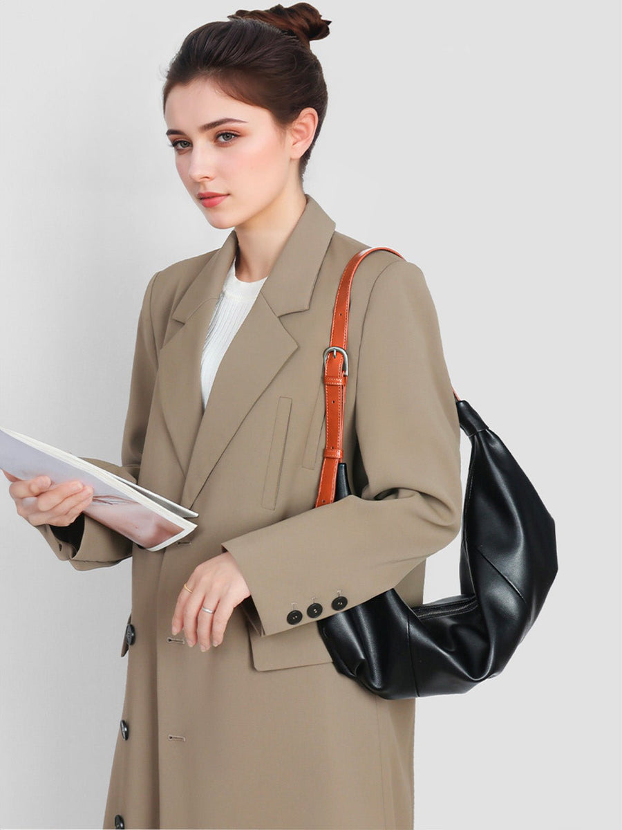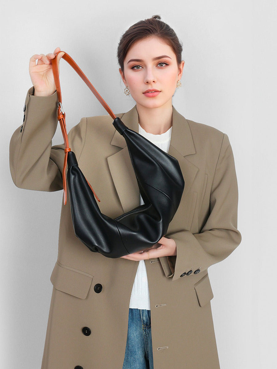Borsa hobo in morbida pelle, borsa a spalla da donna, borsa shopper dumpling, borsa nera o gialla, borsa di design alla moda, modello Ulina