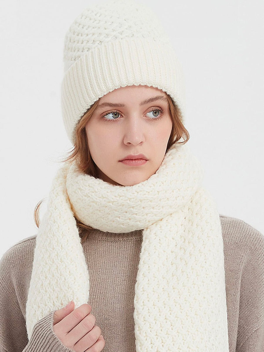 Set berretto e sciarpa caldi invernali lavorati a maglia, coordinati, lana morbida, stile casual, accessorio unisex per l'inverno, modello Ulse