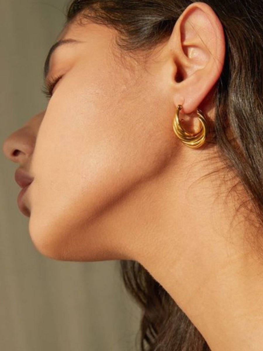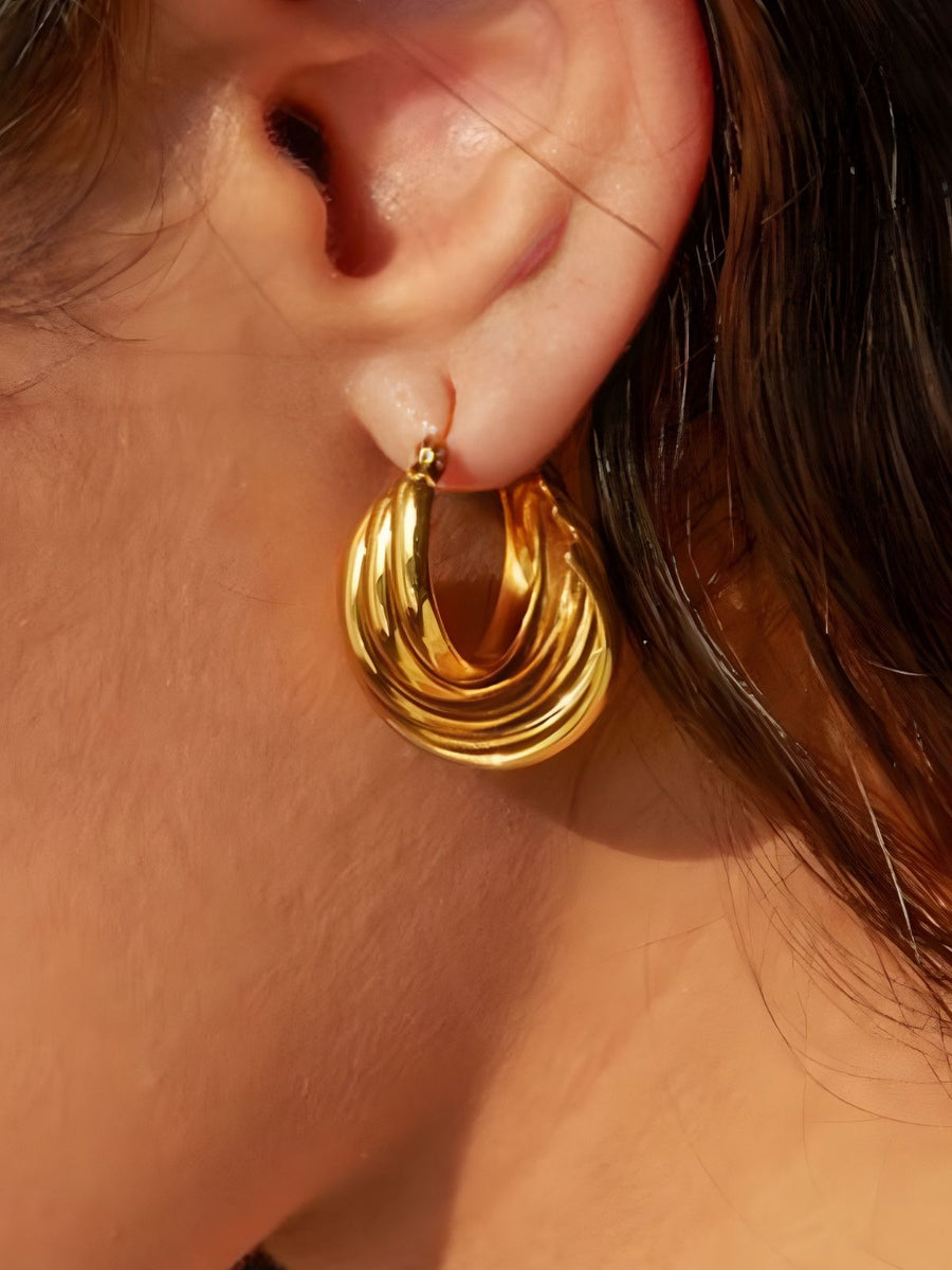 Orecchini Mobius, acciaio inossidabile, placcati oro 18 carati, stile geometrico, design contemporaneo, modello Urielle
