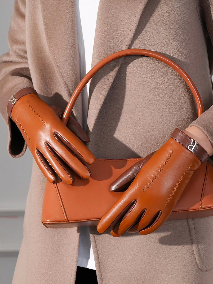 Scoprite questi guanti in pelle pieno fiore pensati per valorizzare l’inverno con discrezione e raffinatezza. La loro tonalità marrone cammello, delicatamente contrastata da dettagli color cioccolato, si abbina facilmente a tutti gli outfit di stagione, dal cappotto strutturato alla maglia pesante.