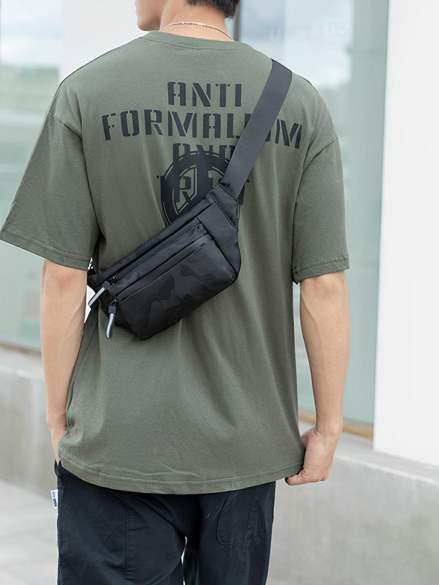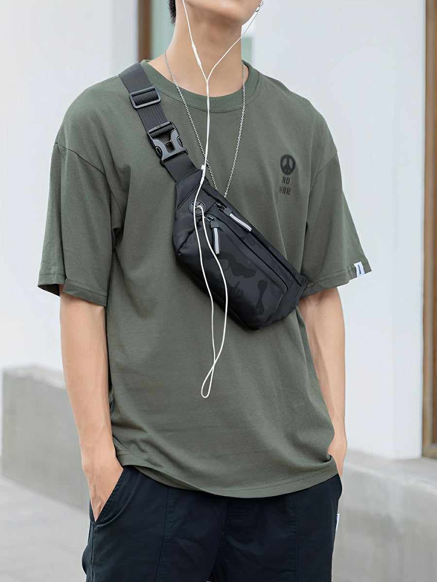 Questa borsa a marsupio da uomo dal design mimetico unisce funzionalità e stile urbano. Compatta e leggera, offre una capacità sufficiente per trasportare i vostri oggetti essenziali quotidiani, rimanendo al contempo discreta e confortevole.