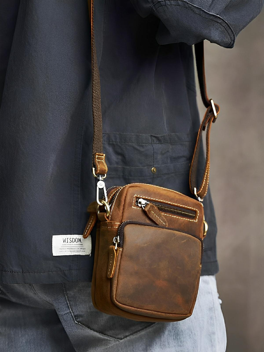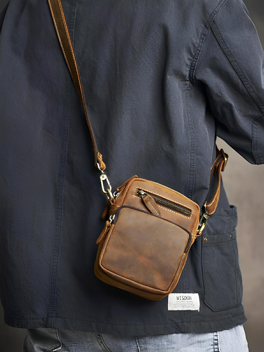 Scoprite questa borsa in pelle pieno fiore, un accessorio dal design vintage che unisce praticità e stile. Ideale per gli uomini alla ricerca di un accessorio funzionale ed elegante.