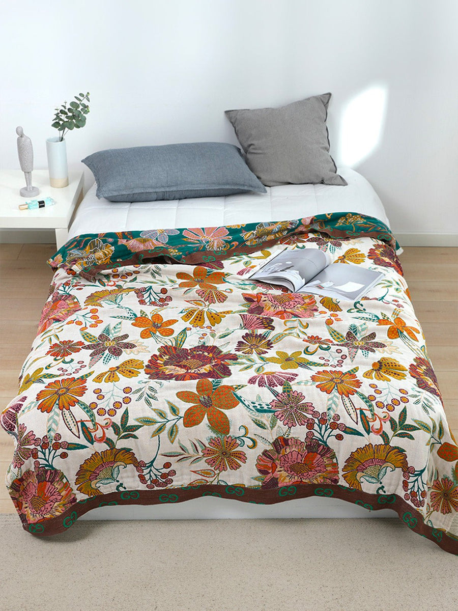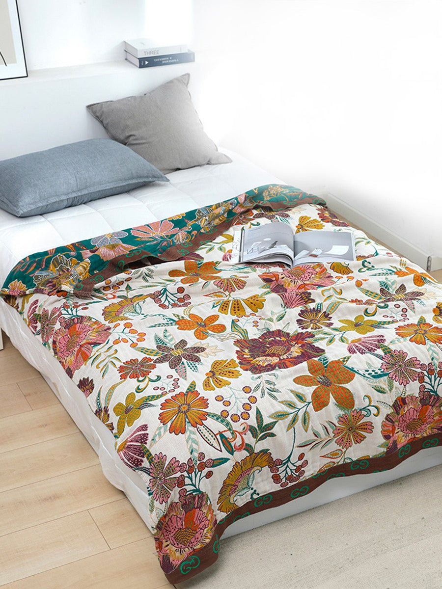 Aggiungete un tocco di freschezza e comfort ai vostri momenti di relax con questo plaid in cotone goffrato dal generoso motivo floreale. Realizzato in 100% cotone con una struttura a sei strati di garza, unisce morbidezza, leggerezza e naturale traspirabilità.