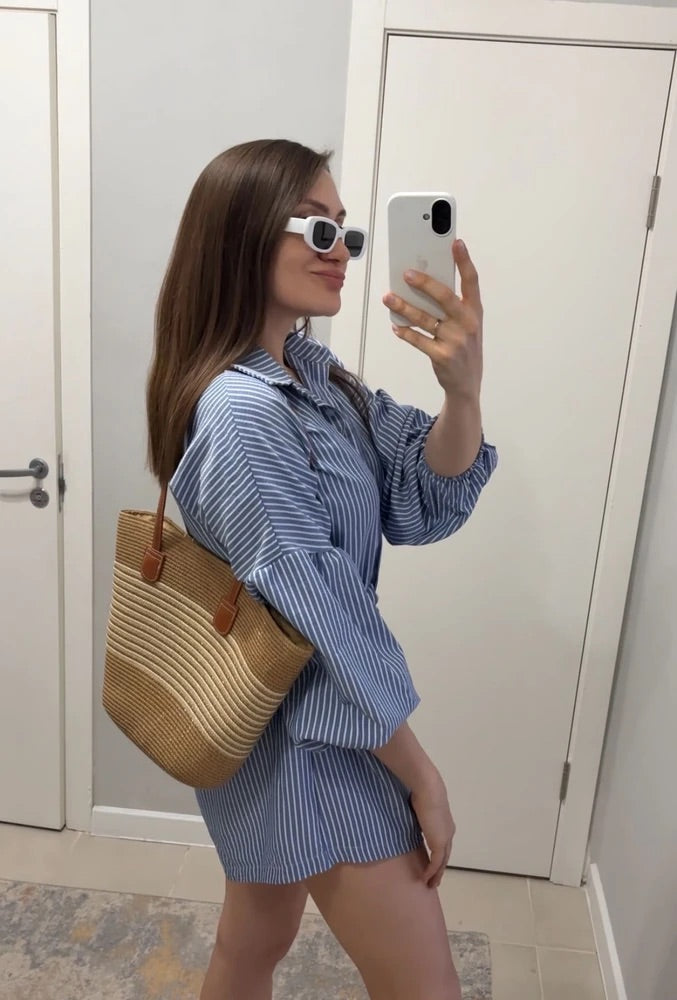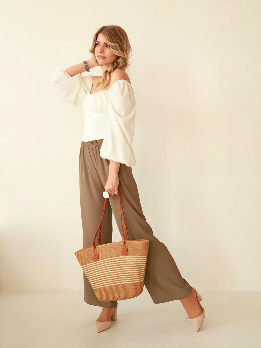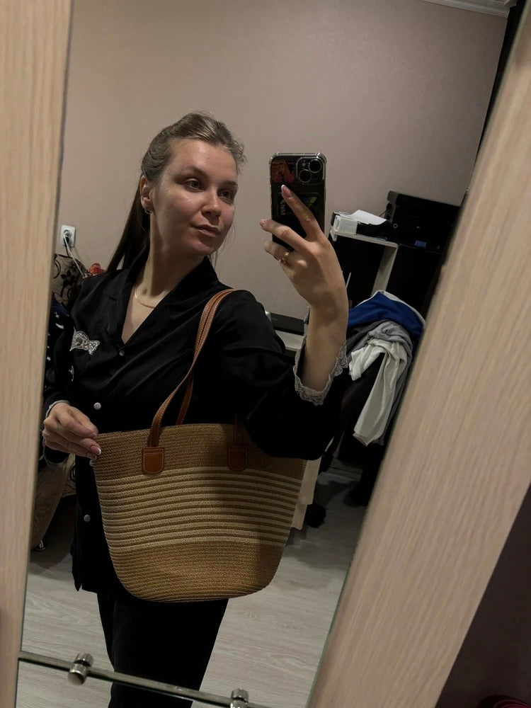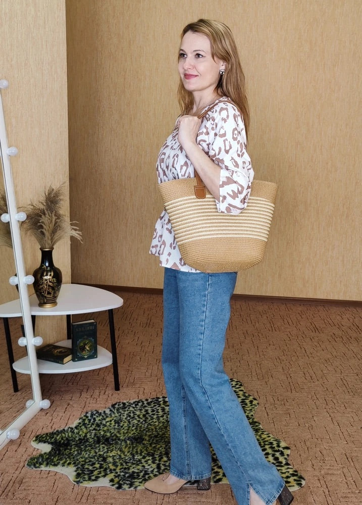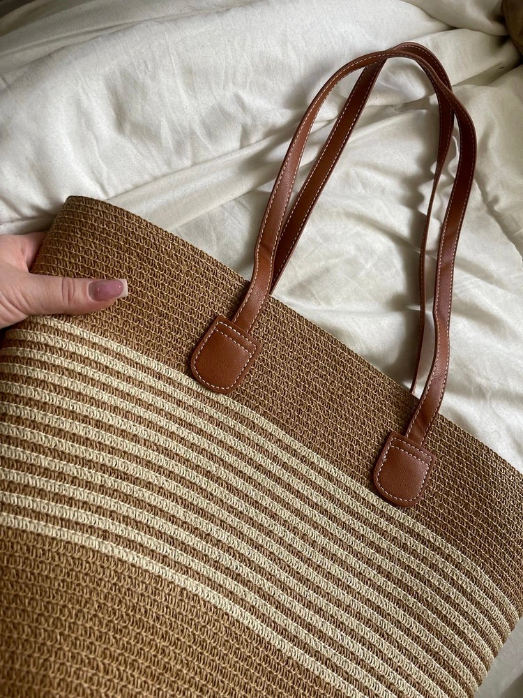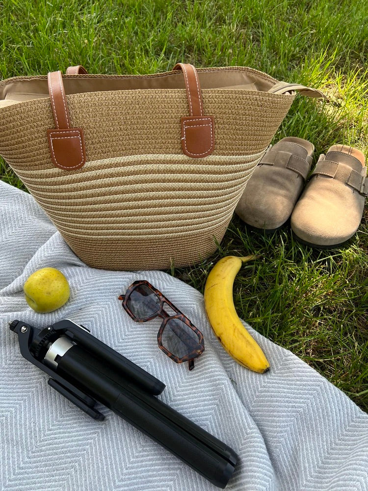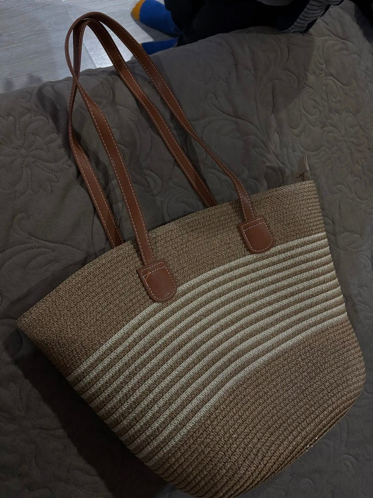 Progettata per accompagnare le giornate di sole, questa borsa da spiaggia in paglia intrecciata unisce un volume generoso a un look estivo. La sua texture naturale e la forma a trapezio si adattano perfettamente sia alle uscite al mare che alle passeggiate in città.
