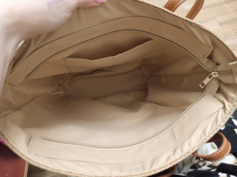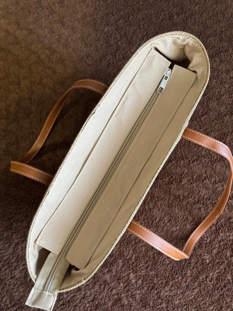 Borsa da spiaggia in rafia intrecciata, grande capienza, chiusura con zip, manici lunghi, stile tote bag, vacanze al sole, modello Yema