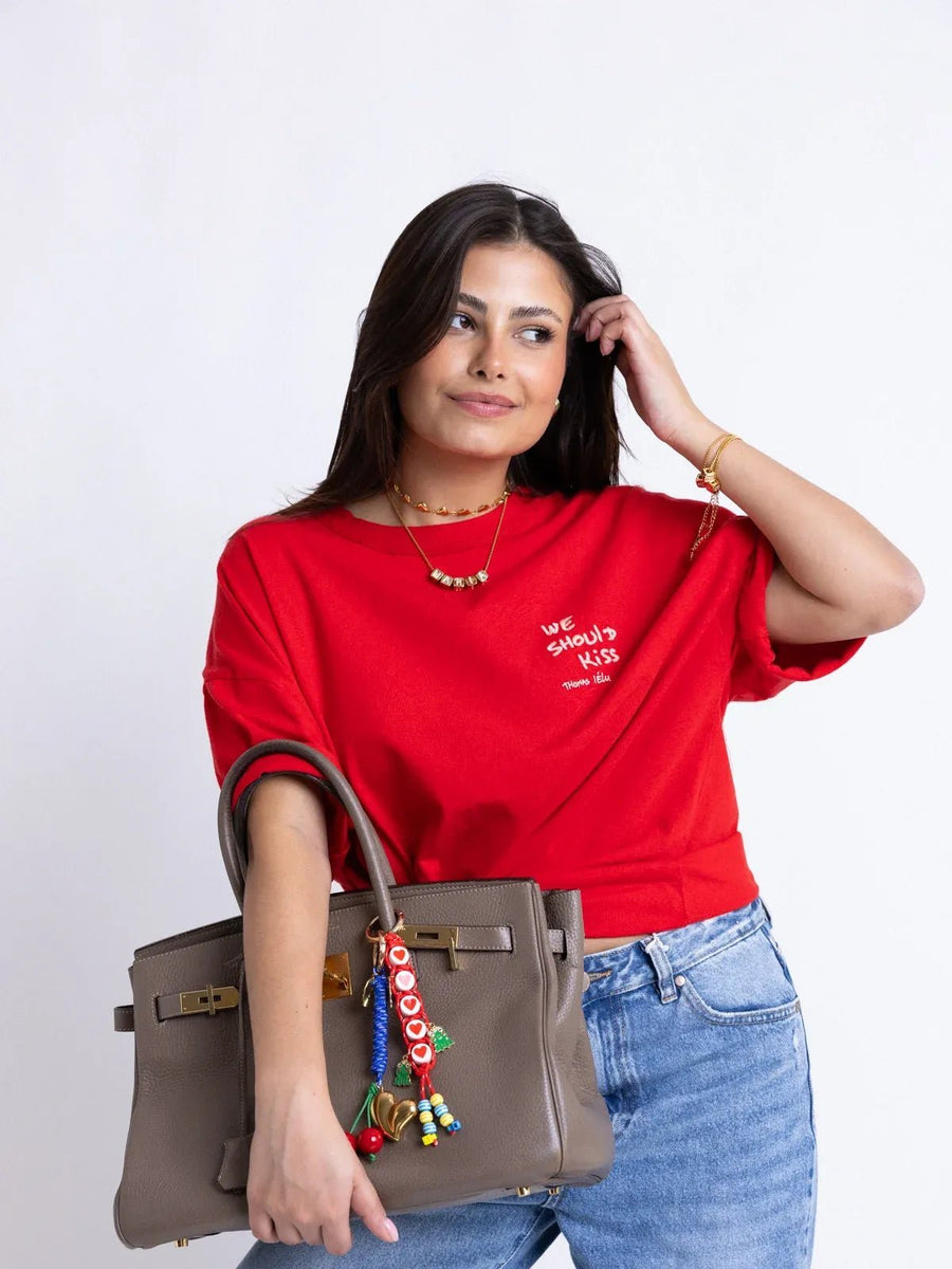 Bijou da borsa ciliegia, cuore dorato, portachiavi fantasia, ciondolo colorato, accessorio borsa di tendenza, modello Yoa