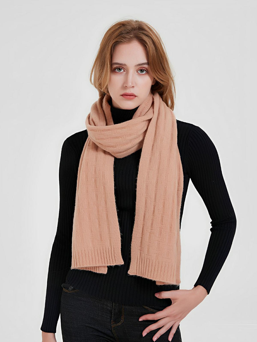 Sciarpa in pura lana merino, lavorata a maglia con motivi a lettere, morbida e calda, unisex, lunghezza 180 cm, accessorio invernale confortevole, modello Yuna