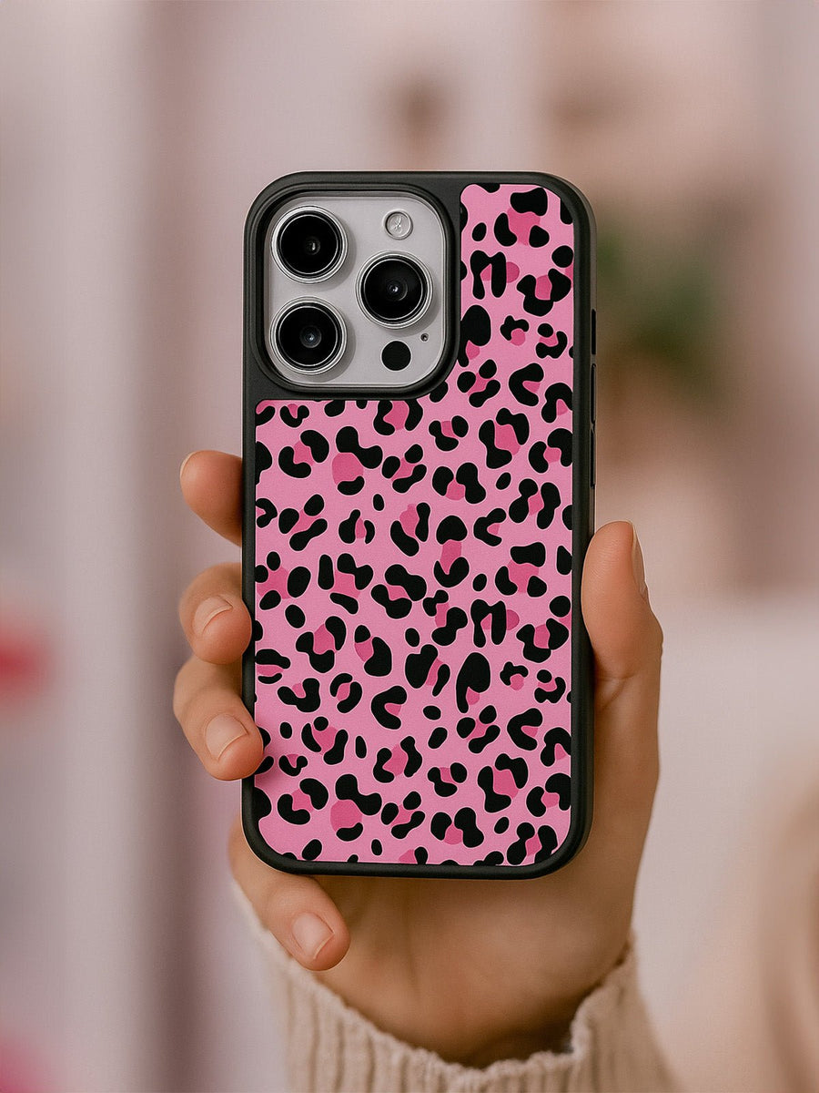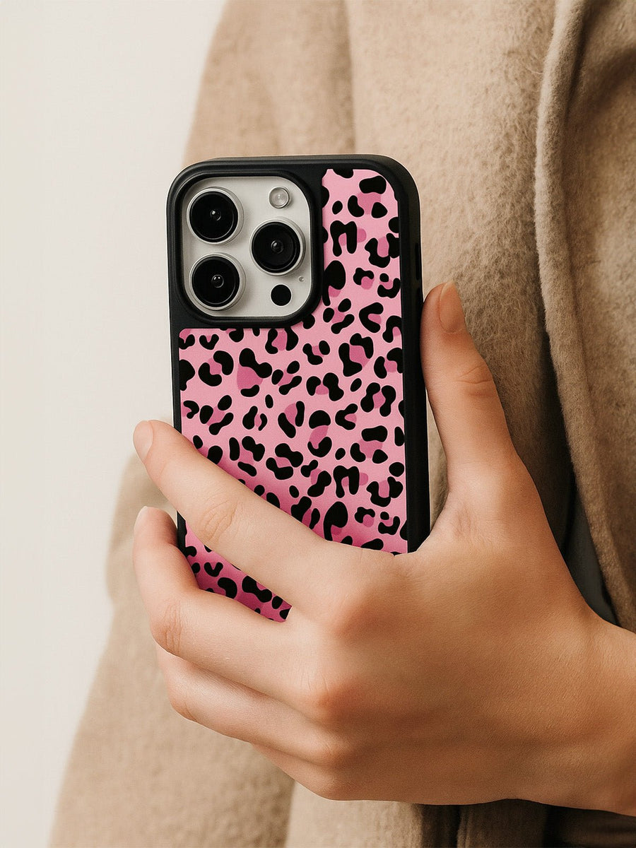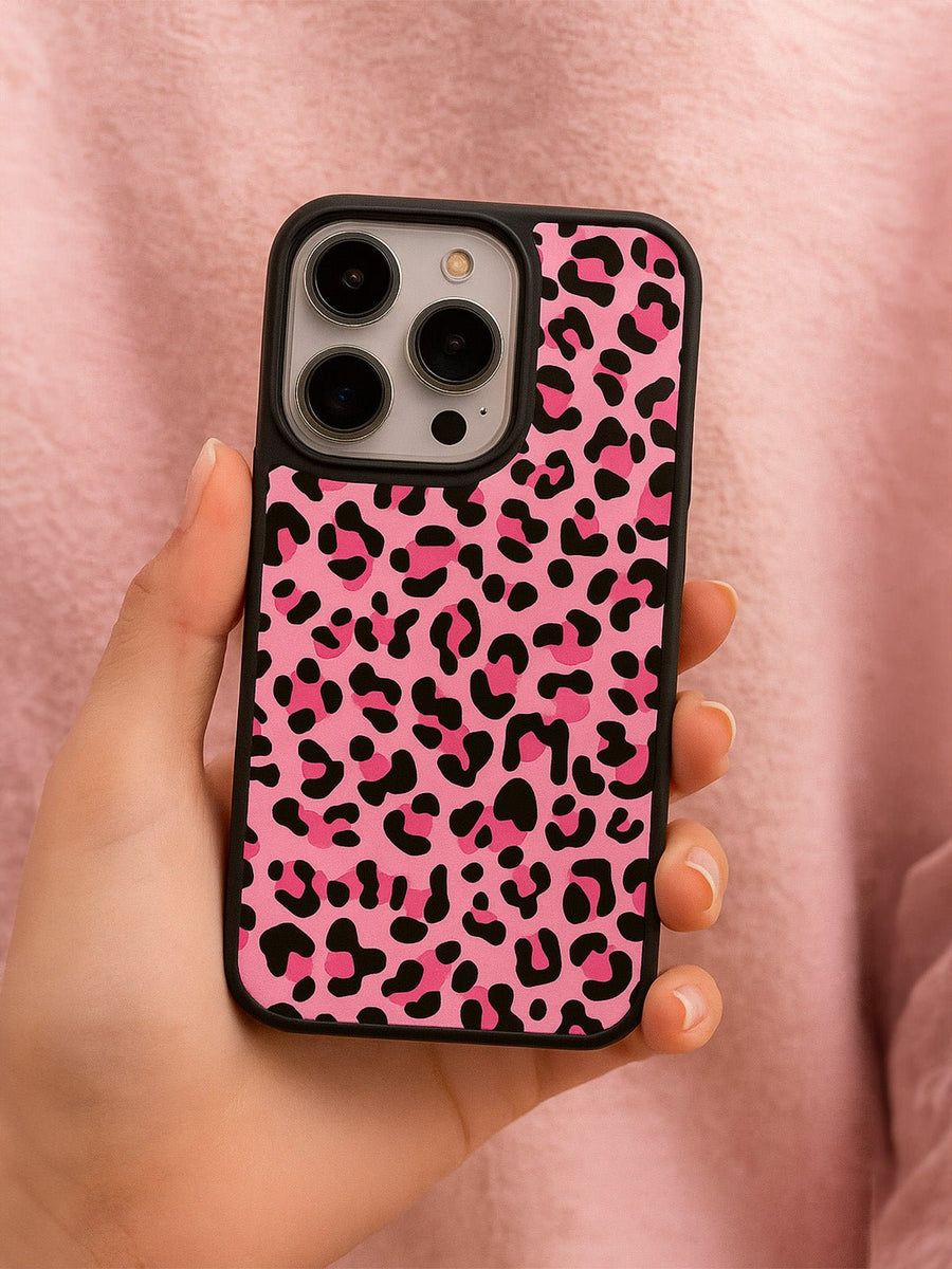 Scoprite questa cover per iPhone con stampa leopardata rosa e nera che unisce uno stile audace a una protezione affidabile. La sua finitura in vetro liscio offre una piacevole sensazione al tatto e un aspetto visivo curato.