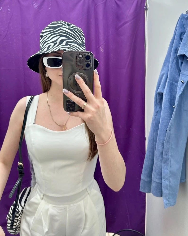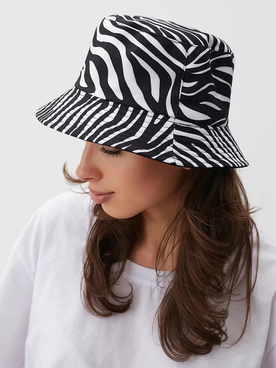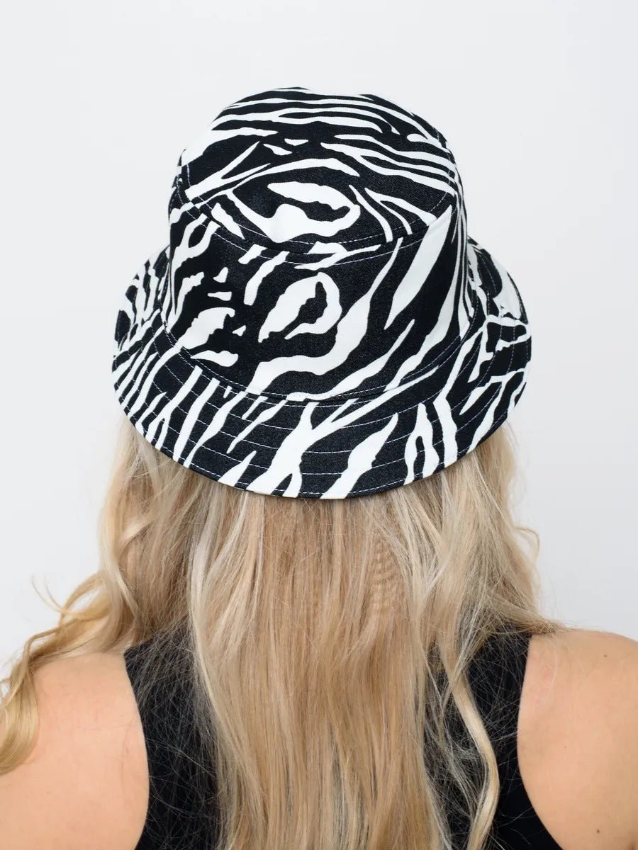Scegliete questo bucket hat zebrato per aggiungere un tocco urbano e grafico ai vostri outfit estivi. Leggero, pratico e deciso, si adatta a ogni esigenza.