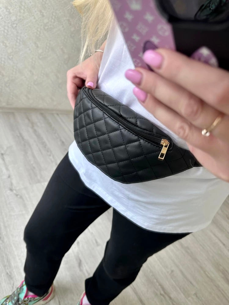 Il suo sistema di chiusura con zip dorata aggiunge un tocco di luminosità, mentre la tracolla regolabile consente di indossarla in vita, a spalla o a tracolla. Una soluzione minimalista per restare mobile e organizzata.