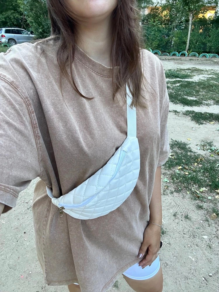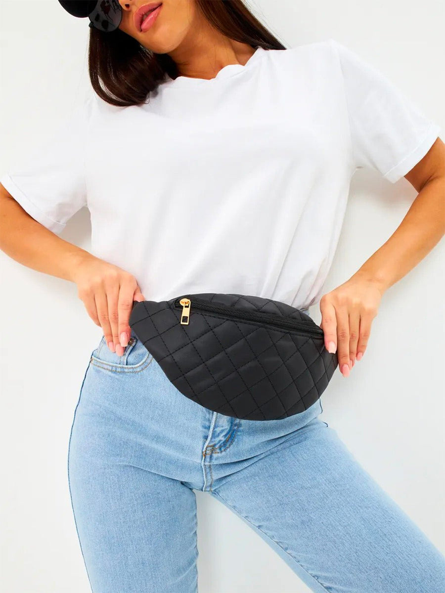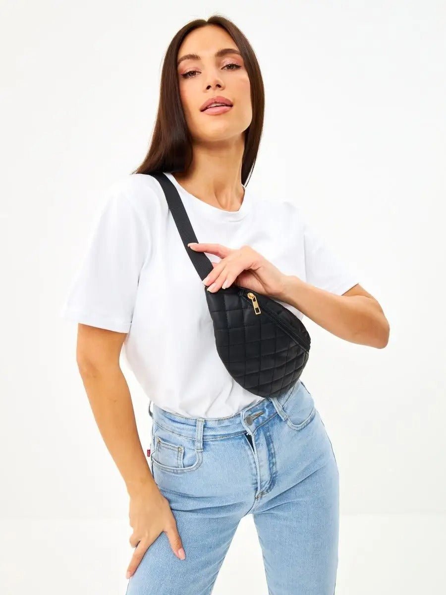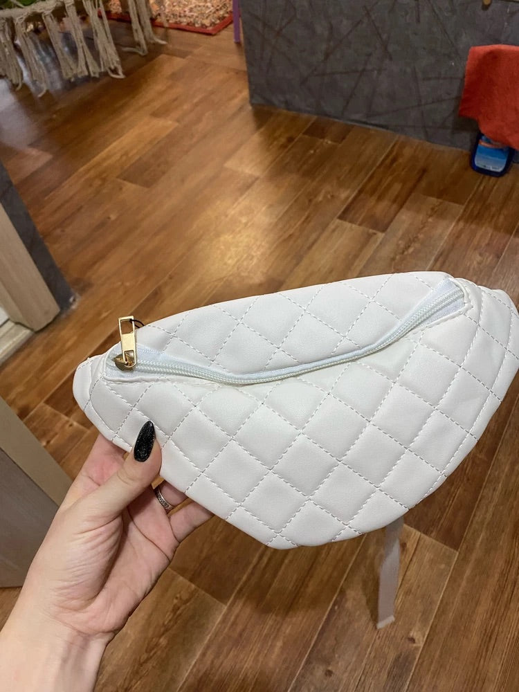 Con il suo design geometrico trapuntato e la silhouette compatta, questa borsa marsupio reinterpreta l’essenziale con un tocco urbano. Disponibile in tre tonalità sobrie – nero, bianco o beige – si abbina facilmente a tutti i vostri outfit quotidiani.