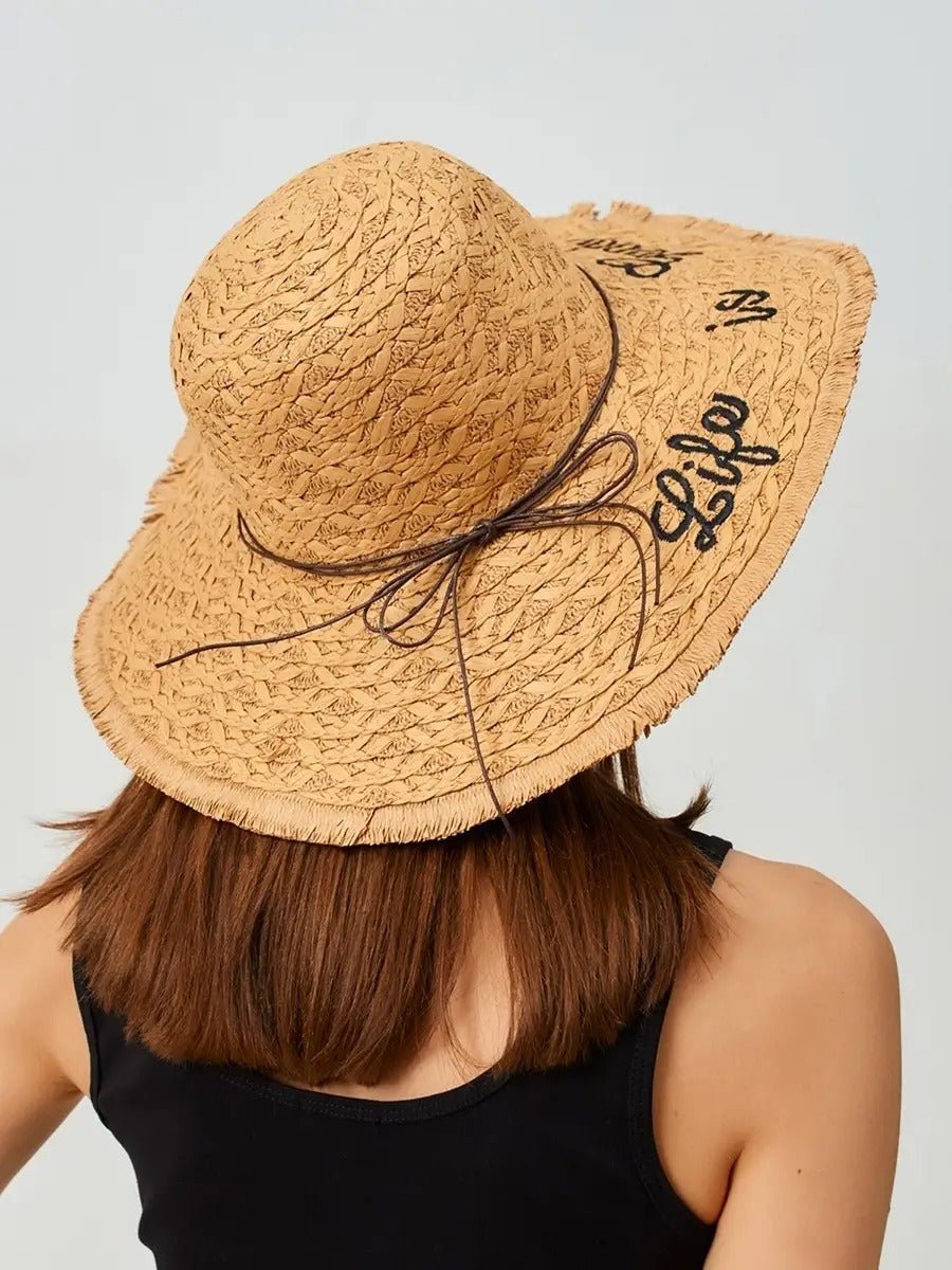 Il dettaglio distintivo? Un’applicazione ricamata "Life is Good" sulla tesa, che esprime un atteggiamento positivo e spensierato. Un nastro nero annodato completa l’eleganza con raffinatezza, creando un contrasto affascinante sulle versioni beige chiaro o scuro disponibili.