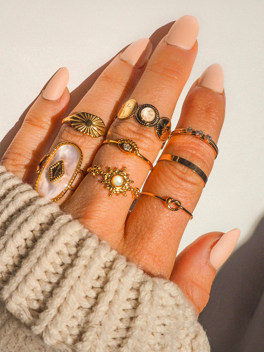 Anello sole, regolabile, placcato oro 18K, acciaio inossidabile, stile vintage ins, estate primavera, modello Zoa