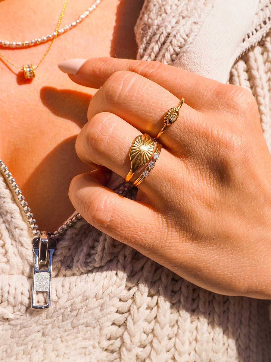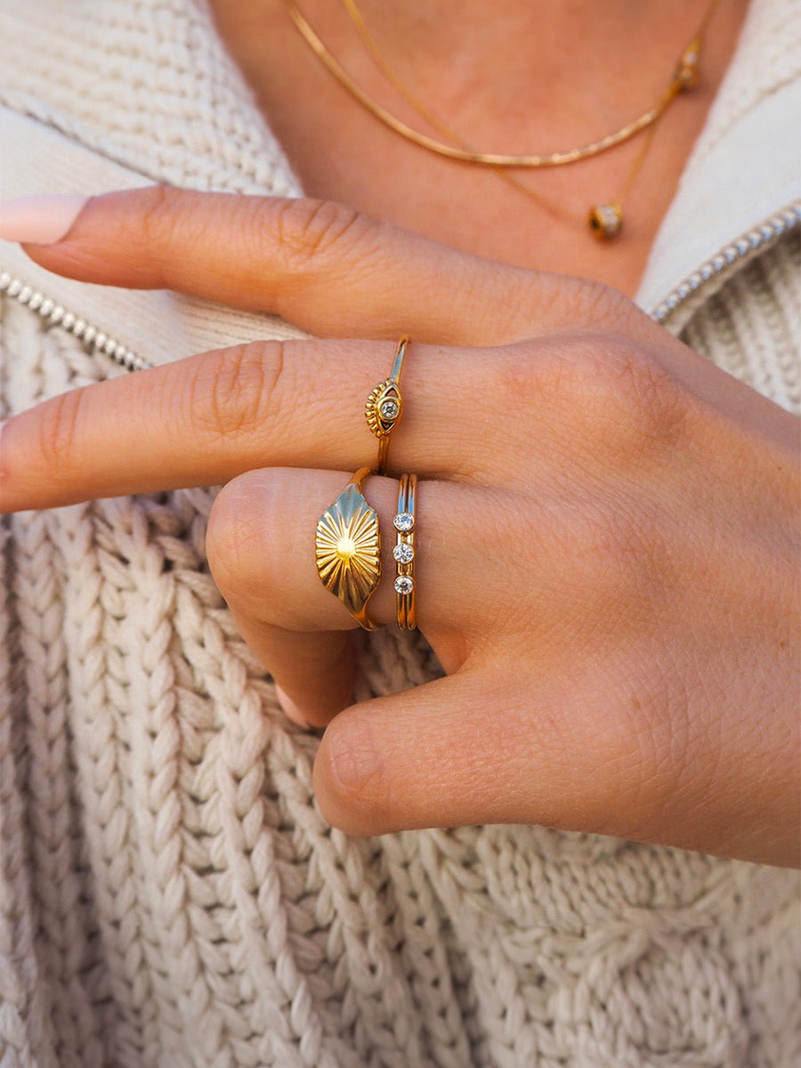 Indossato da solo o abbinato ad altri anelli sottili, dona un tocco luminoso e deciso a tutti i vostri outfit.