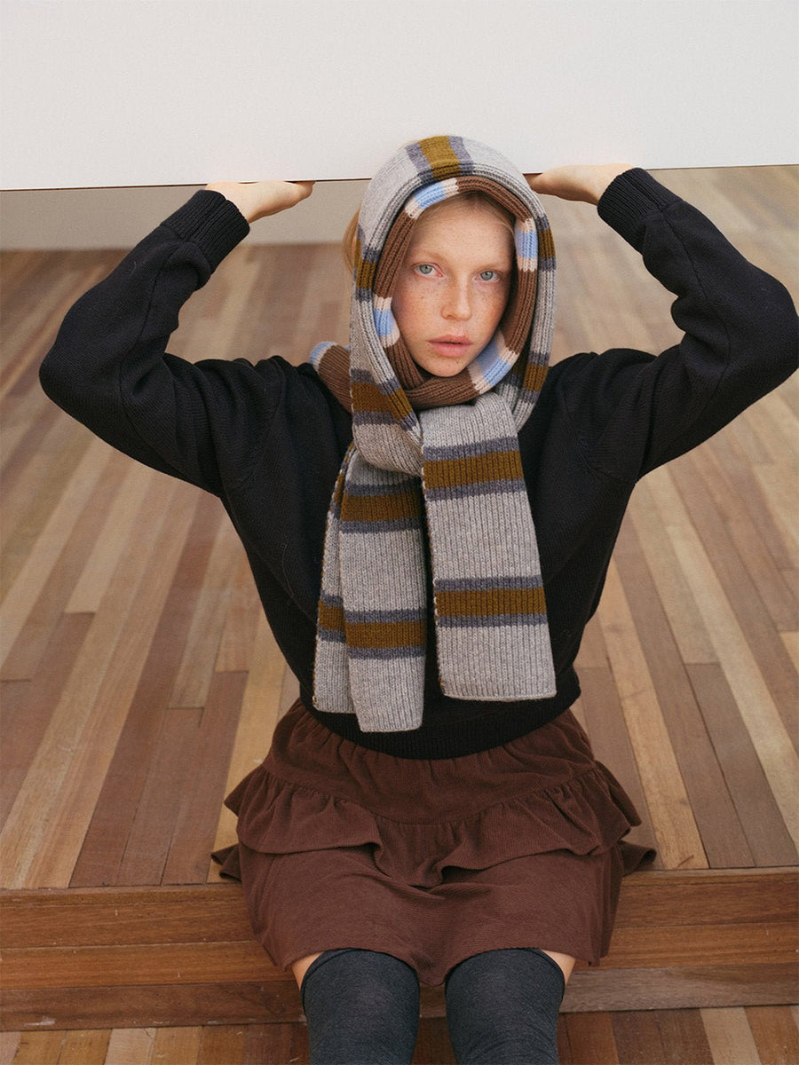 Ogni variante di colore valorizza un motivo a righe al tempo stesso rétro e contemporaneo, capace di ravvivare un cappotto classico o completare un look più deciso. Lavorata a maglia spessa, vi protegge efficacemente dai brividi aggiungendo al contempo un tocco grafico ai vostri abbinamenti.