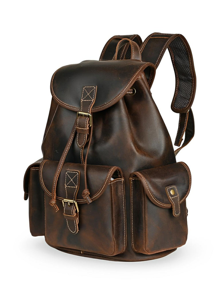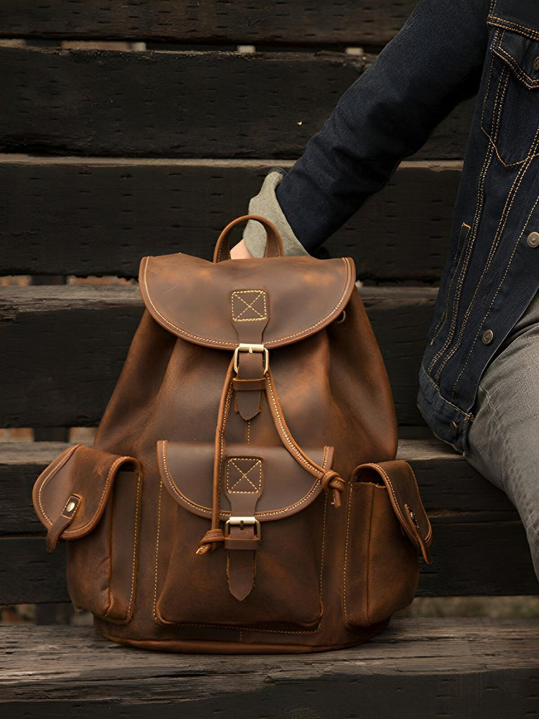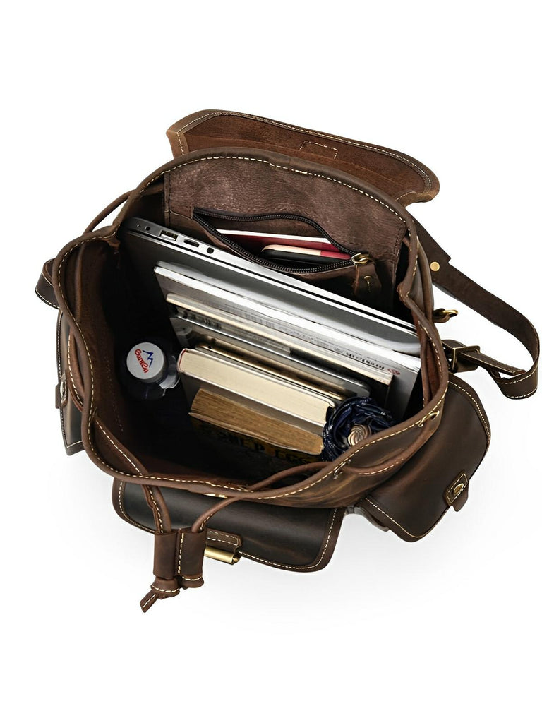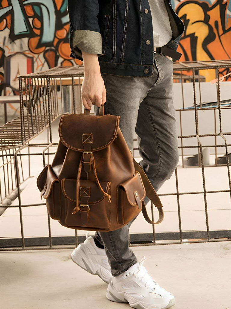 Ontdek deze leren rugzak, ontworpen voor mannen die zowel praktisch als stijlvol willen zijn. Gemaakt van volnerfleer, biedt dit model een grote duurzaamheid en een vintage uitstraling. Het ruime hoofdvak maakt het mogelijk een laptop tot 14 inch, boeken, een tablet en andere essentiële spullen mee te nemen. De buitenzakken maken het opbergen van kleine accessoires gemakkelijk voor snelle toegang.