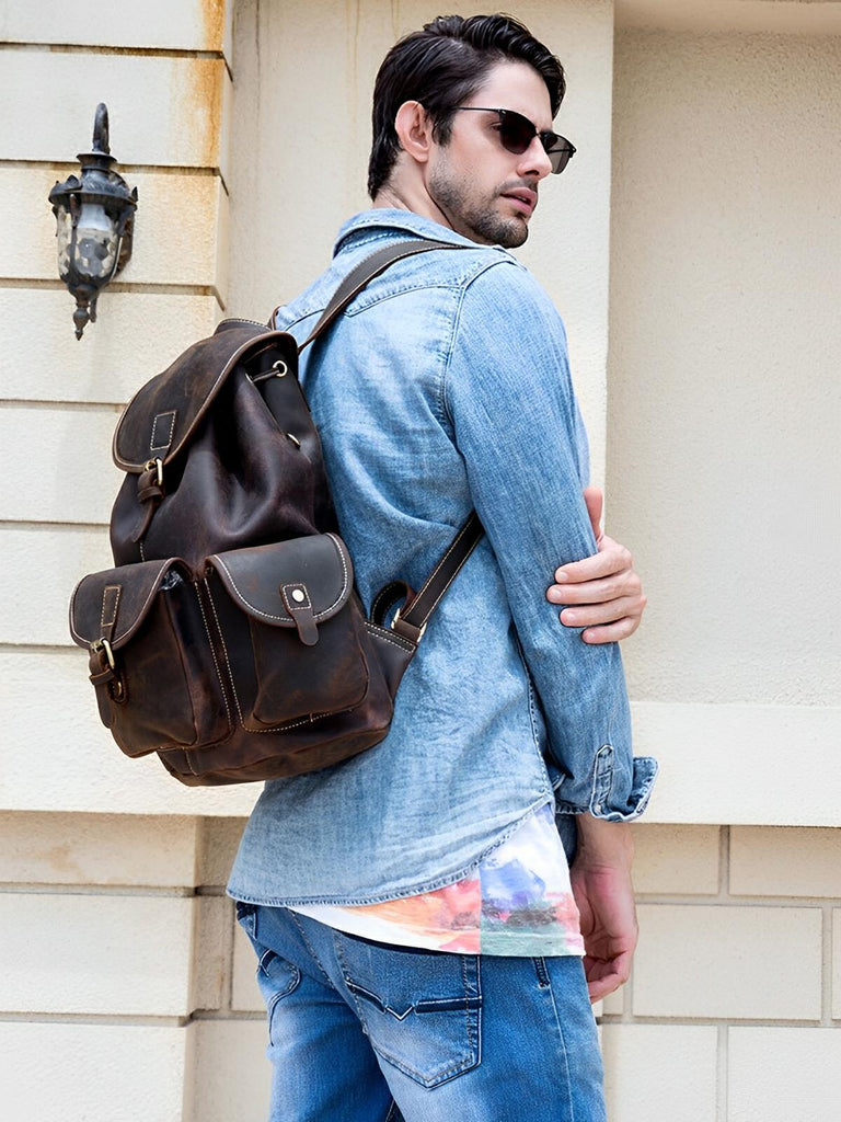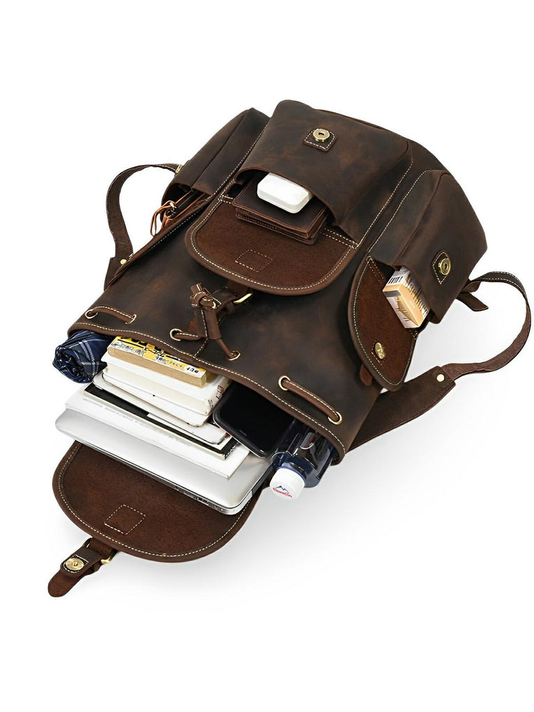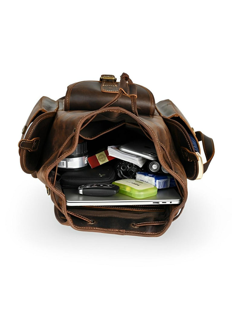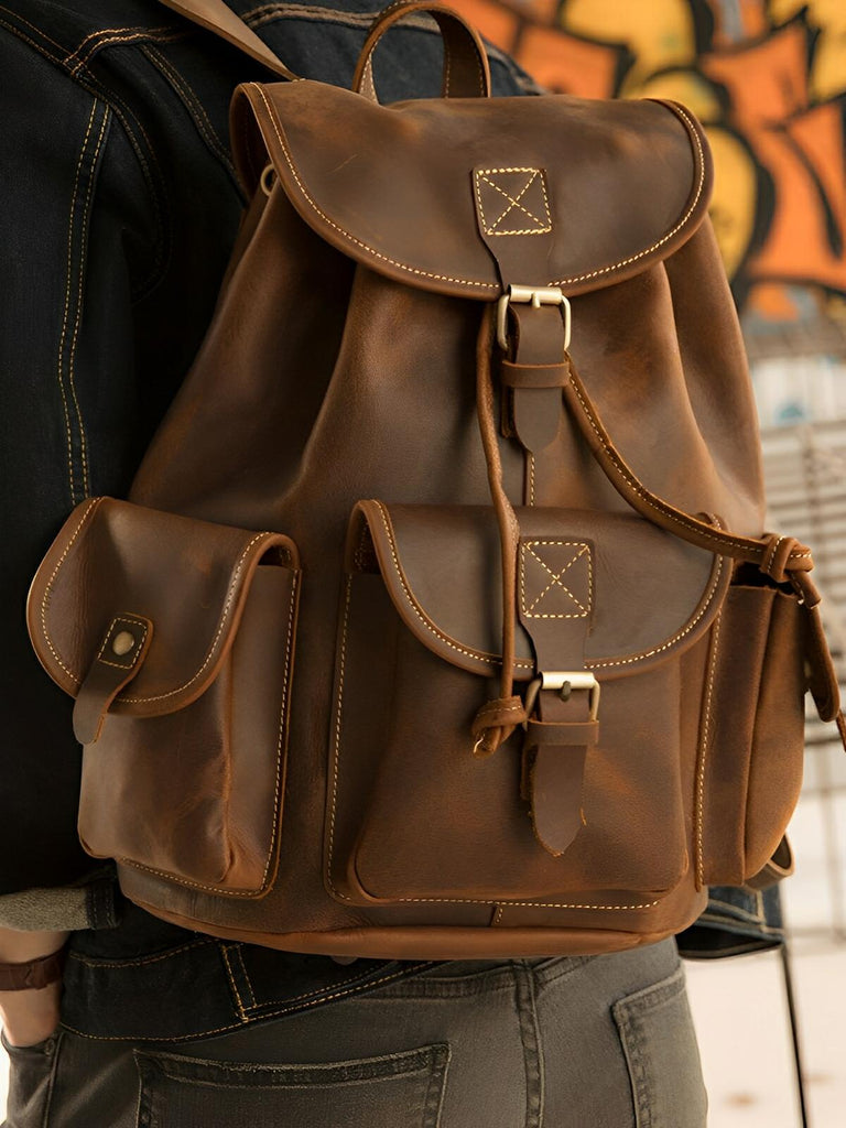 Ontdek deze leren rugzak, ontworpen voor mannen die zowel praktisch als stijlvol willen zijn. Gemaakt van volnerfleer, biedt dit model een grote duurzaamheid en een vintage uitstraling. Het ruime hoofdvak maakt het mogelijk een laptop tot 14 inch, boeken, een tablet en andere essentiële spullen mee te nemen. De buitenzakken maken het opbergen van kleine accessoires gemakkelijk voor snelle toegang.