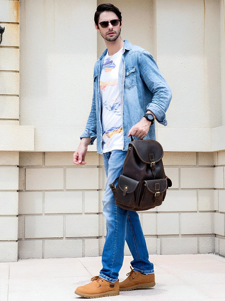 Leren rugzak, stedelijke uitjes en dagelijks gebruik, model Isambert