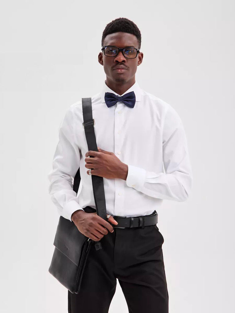 Deze vlinderdas is voorgebonden voor een vlekkeloos resultaat zonder moeite, en voorzien van een discreet verstelbare band die zich aan alle lichaamsvormen aanpast. Verkrijgbaar in een palet van sobere of levendige kleuren – zwart, wit, bordeaux of felblauw – hij past gemakkelijk bij alle overhemden en kostuumoutfits.