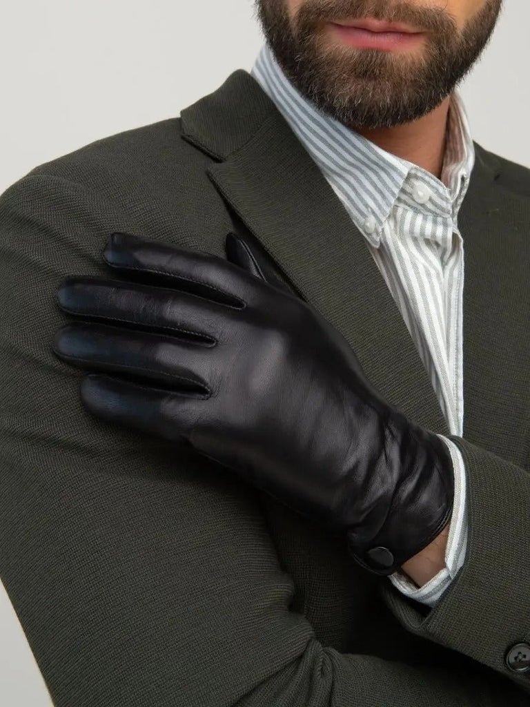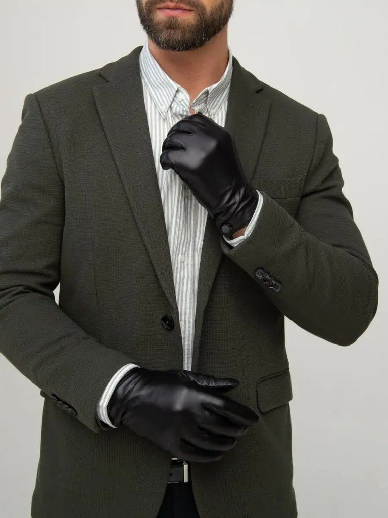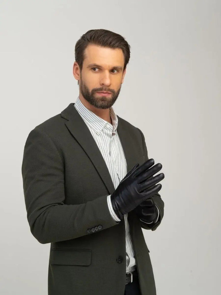 Leren herenhandschoenen, winter, zwarte handschoenen gevoerd met wol, gekleed en warm, antislip en modern, model Romano