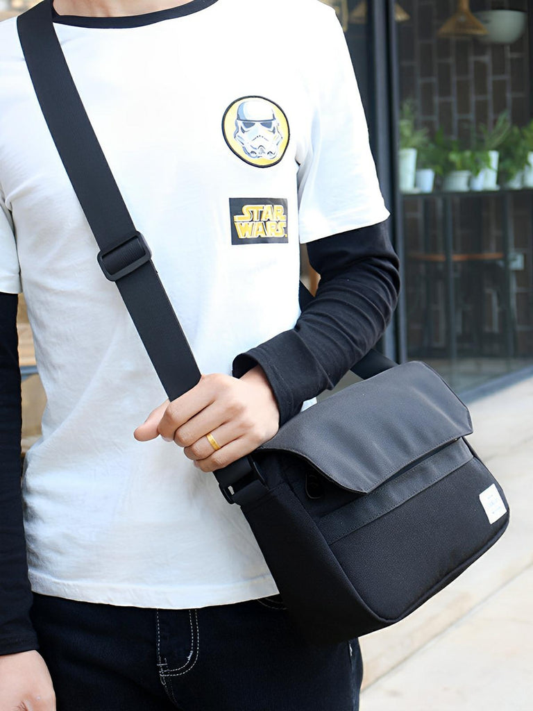 Schoudertas voor mannen, duurzame stof, compact, meerdere zakken, model Loris