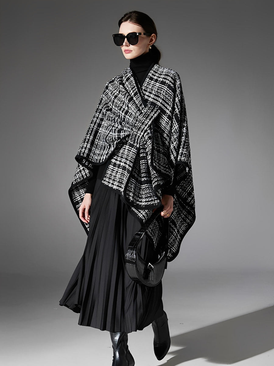 Dames sjaal zwart wit, moderne plaid, grote warme sjaal, winteraccessoire, omslagcape, Europese stijl, model Wenda